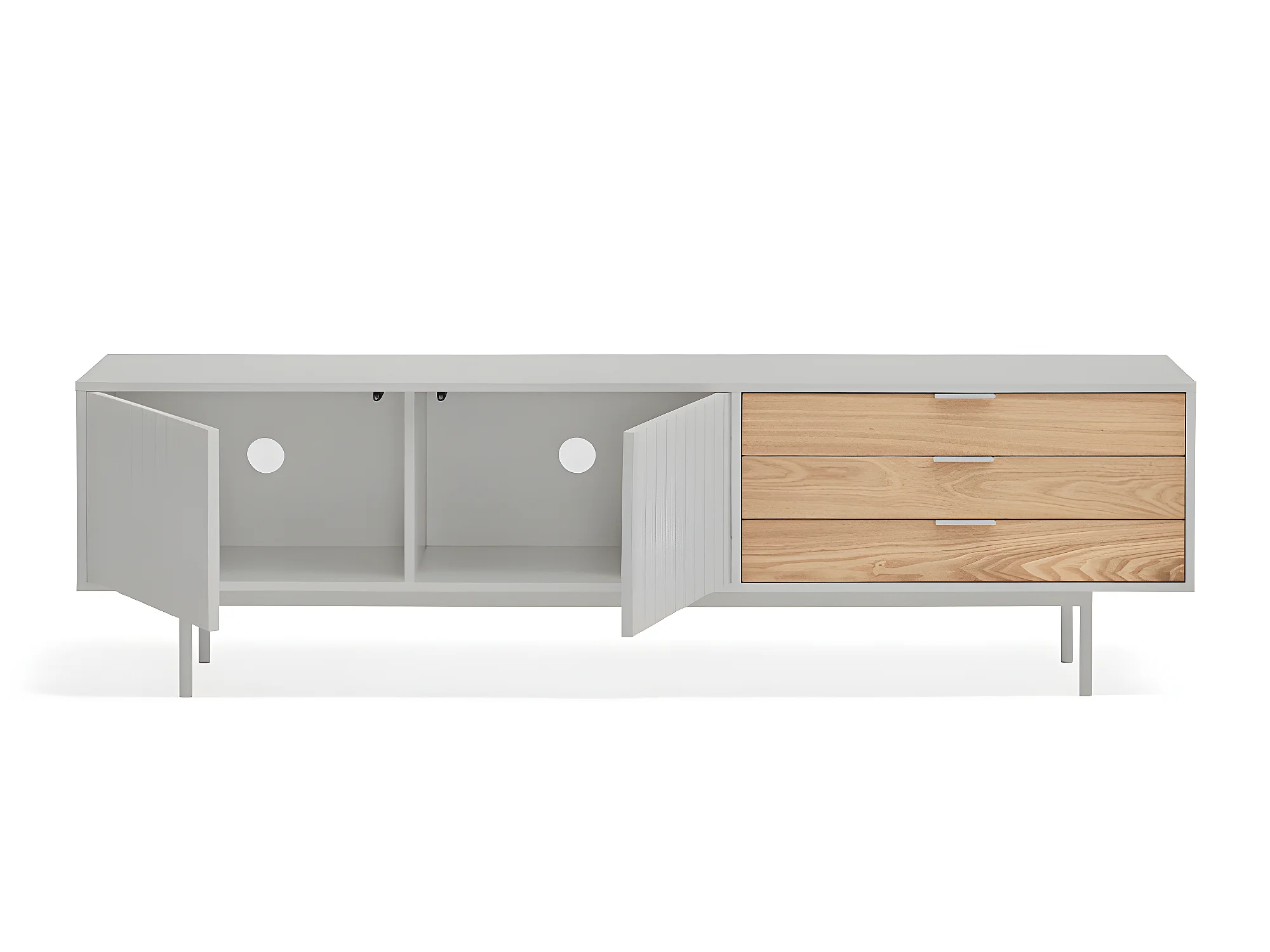 Sierra - Meuble TV 2 portes, 3 tiroirs en bois L180cm - Gris clair