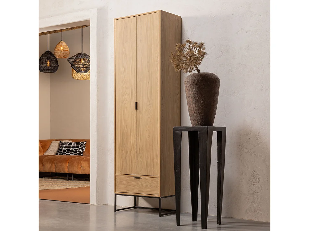 Silas - Armoire 2 portes 1 tiroir en bois H210cm - Bois clair