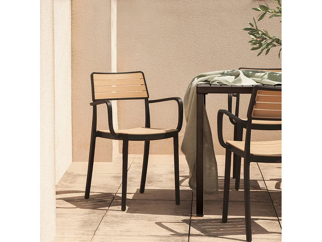 Chaise d'extérieur en plastique noir-naturel 44x81 cm-Kaira