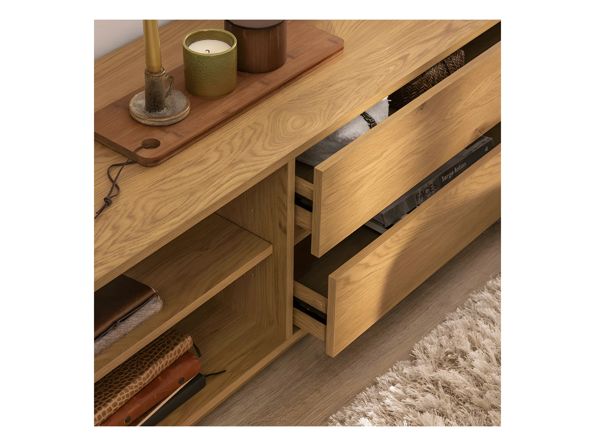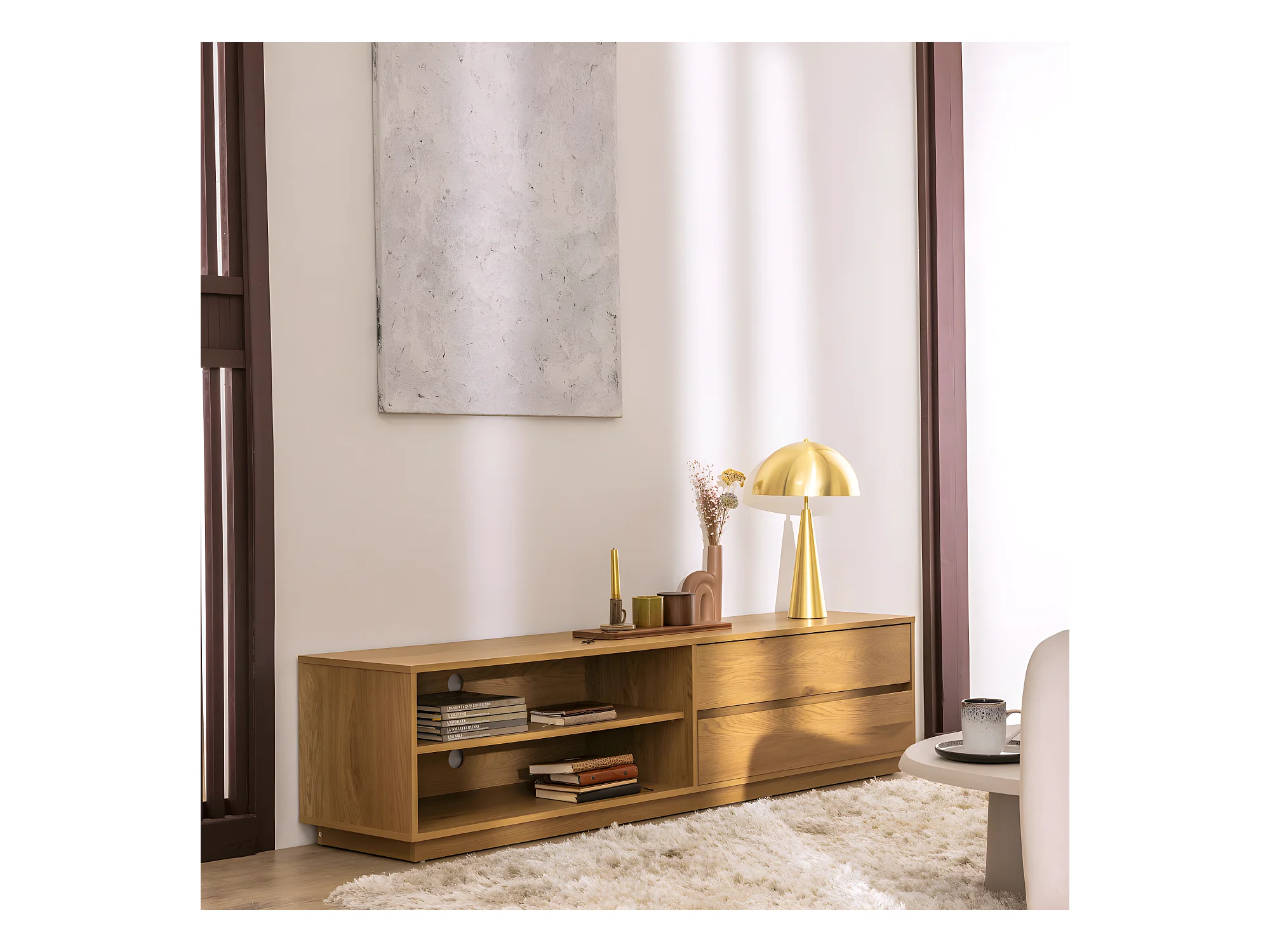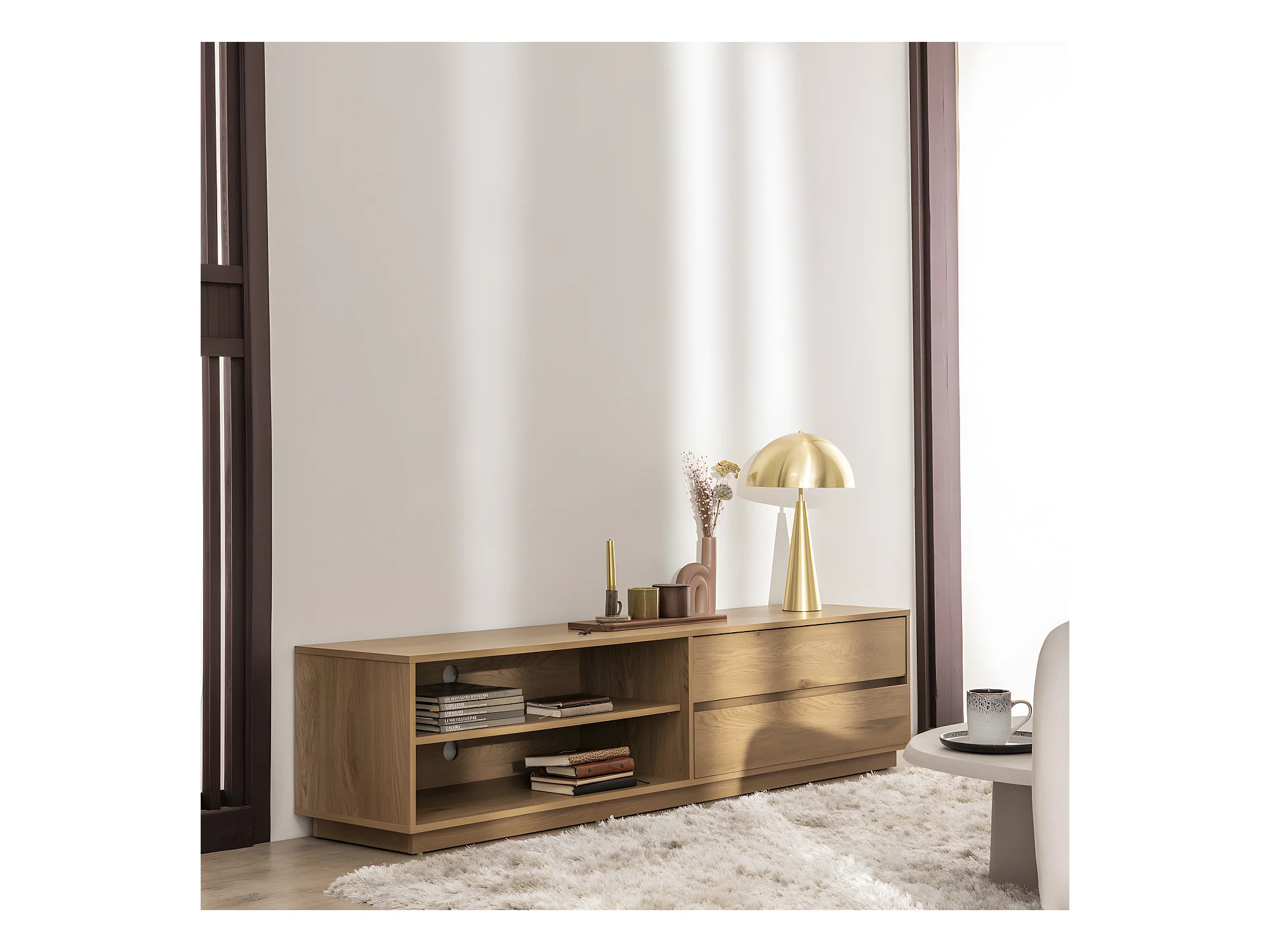 Since - Meuble tv 2 tiroirs, 2 niches en bois L180cm - Bois clair