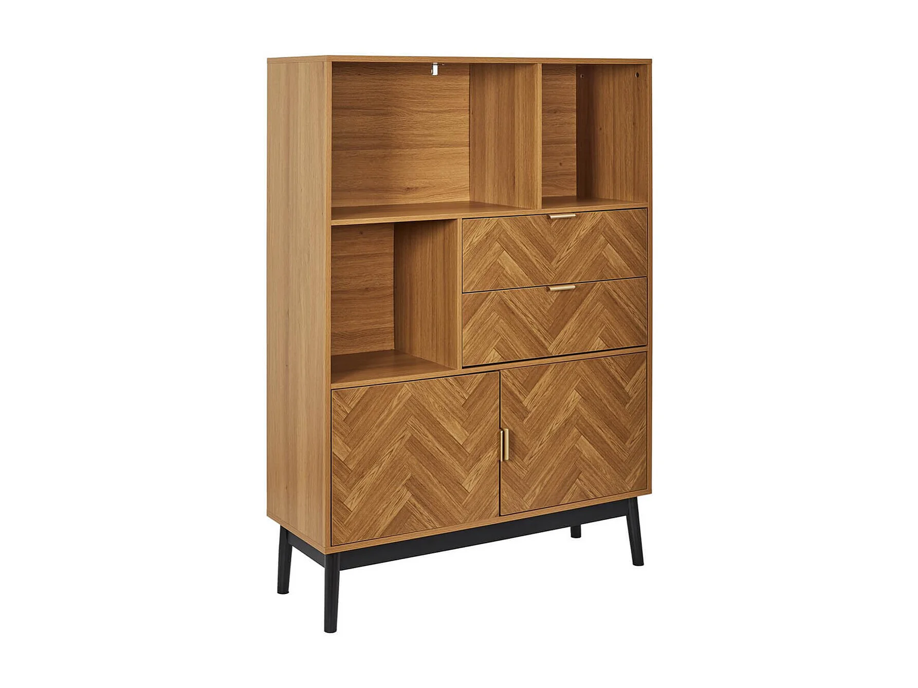 SIXTYS - Bibliothèque Aspect Bois Décor Chevrons Piétement Noir