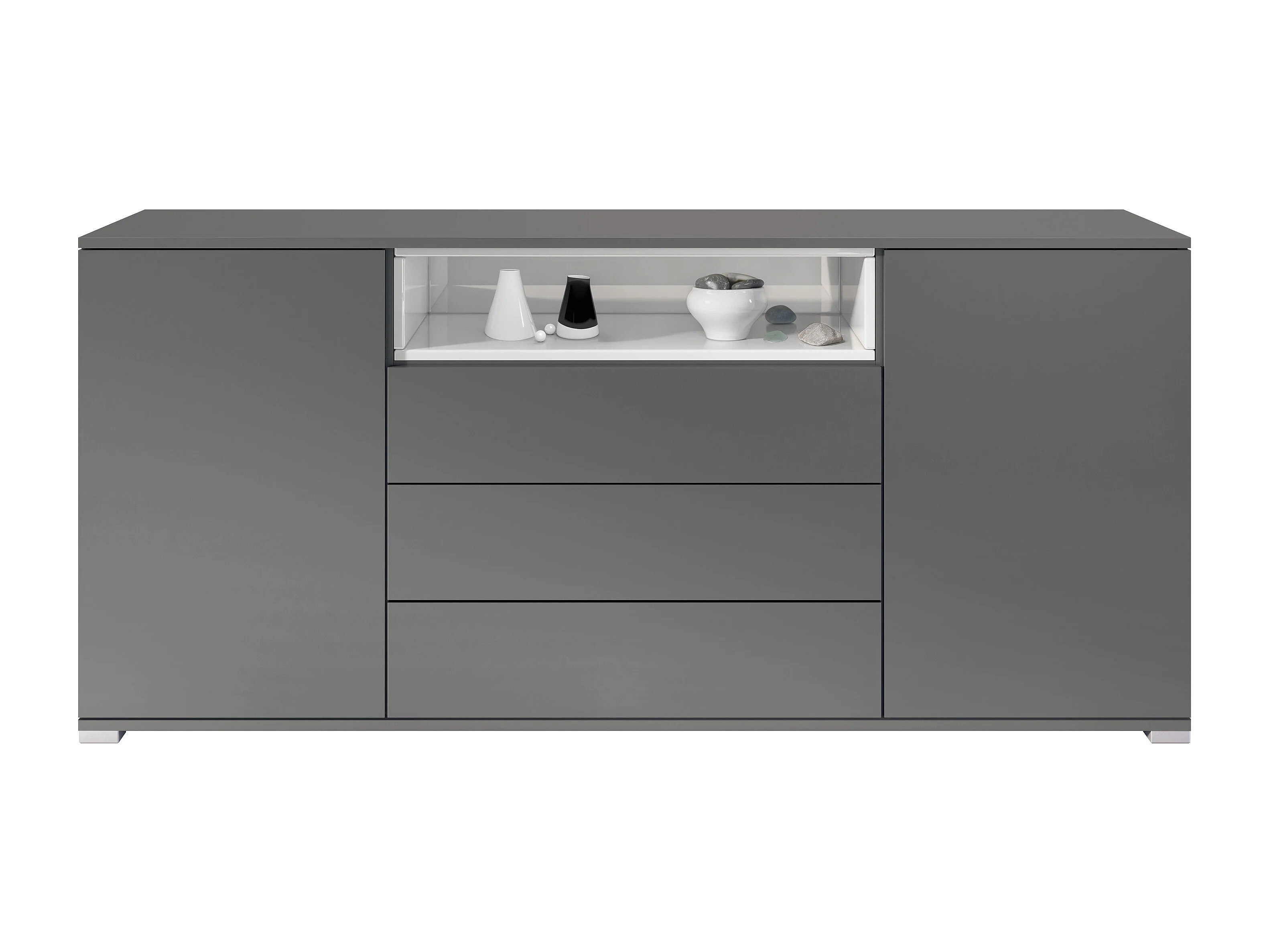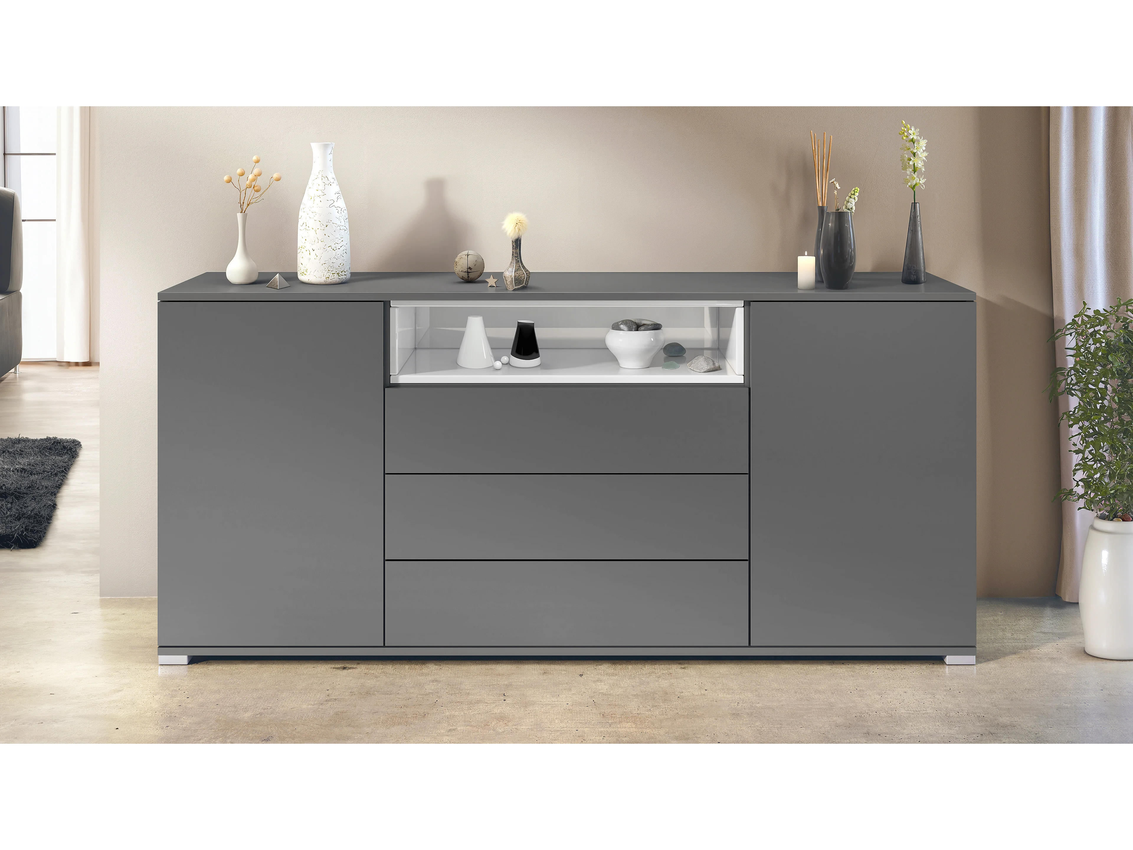 Skadu V4 Buffet, Commode avec 2 portes, 3 tiroirs et 1 compartiment ouvert, anthracite mat/blanc haute brillance (166,5 x 75,5 x 35 cm)