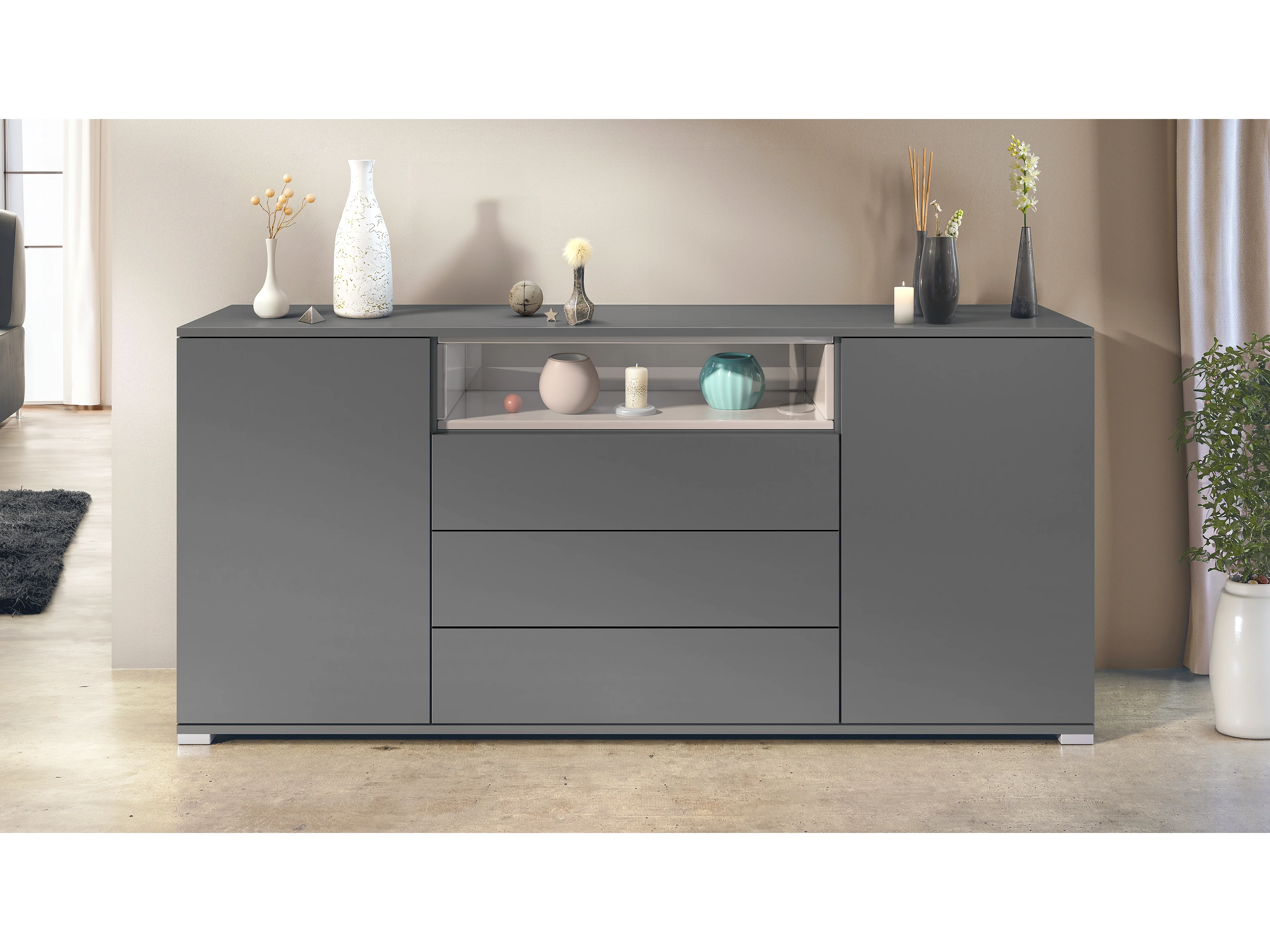 Skadu V4 Buffet, Commode avec 2 portes, 3 tiroirs et 1 compartiment ouvert, anthracite mat/gris sable haute brillance (166,5 x 75,5 x 35 cm)