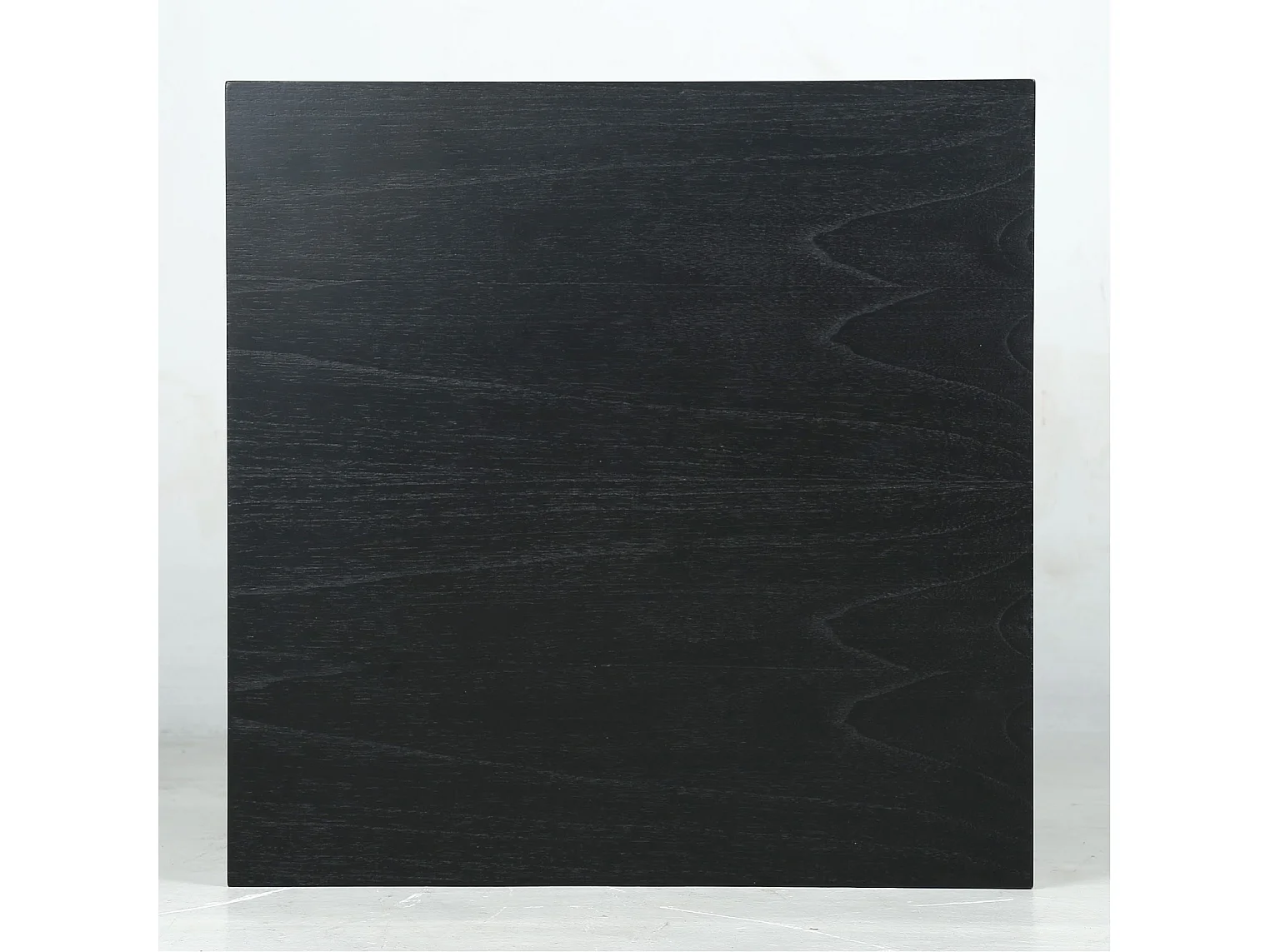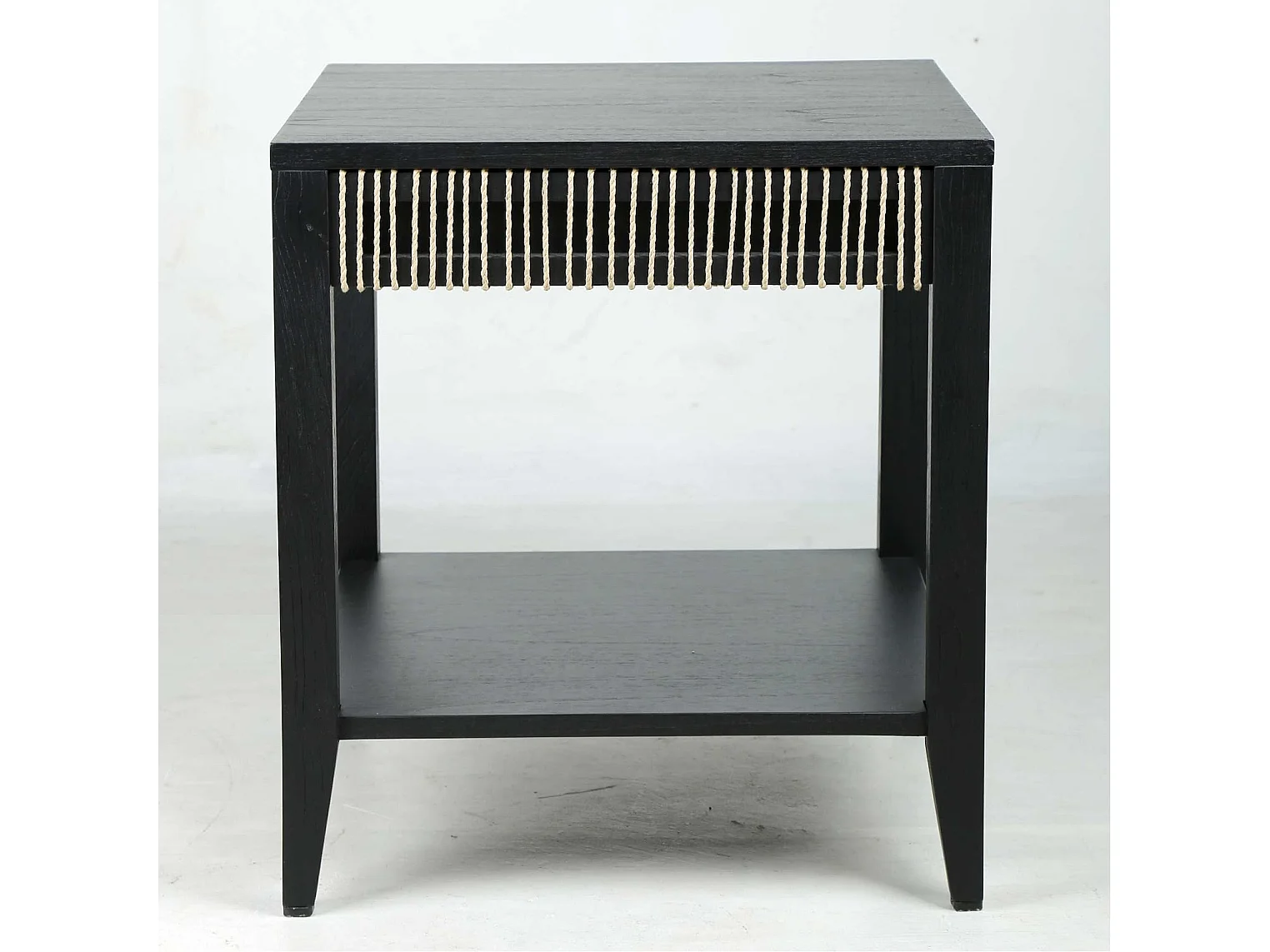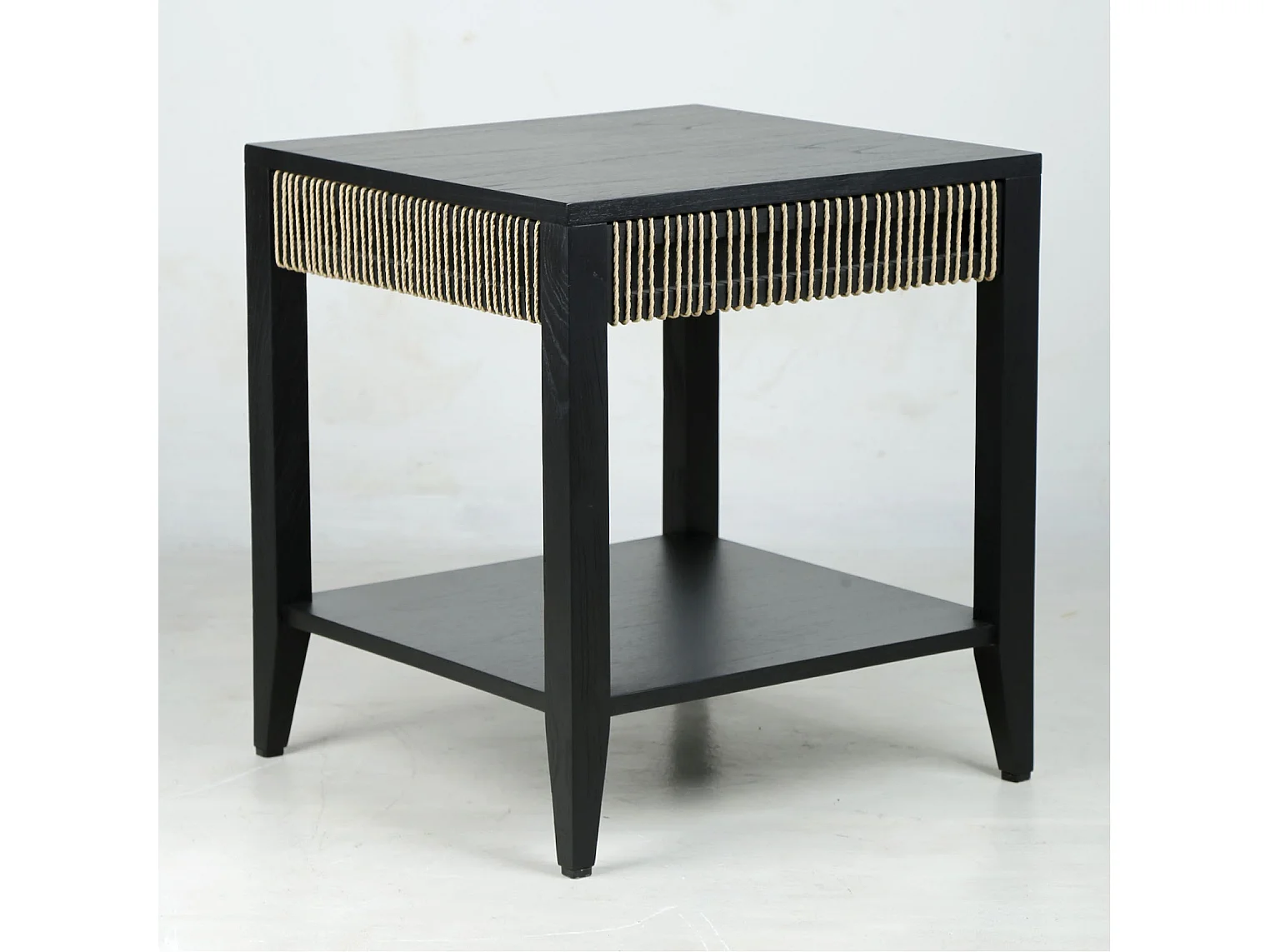 Slavia, table d'appoint carrée deux plateaux, en bois et loom, noir et naturel