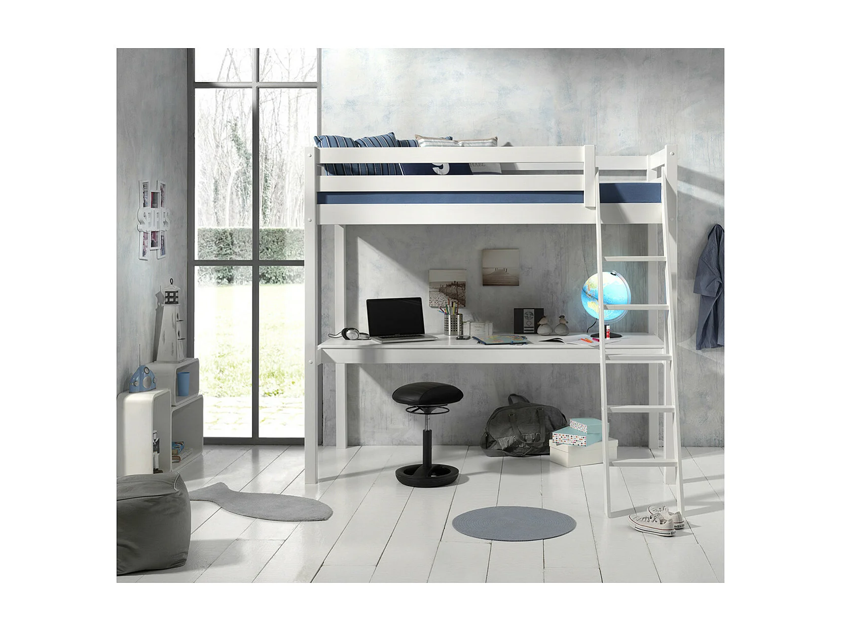 SLEEPY - Lit Mezzanine Blanc 90x200cm avec Bureau 205 cm