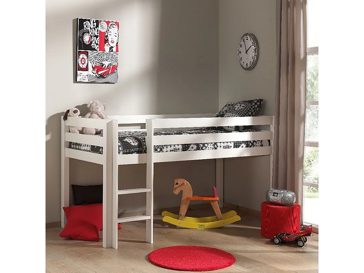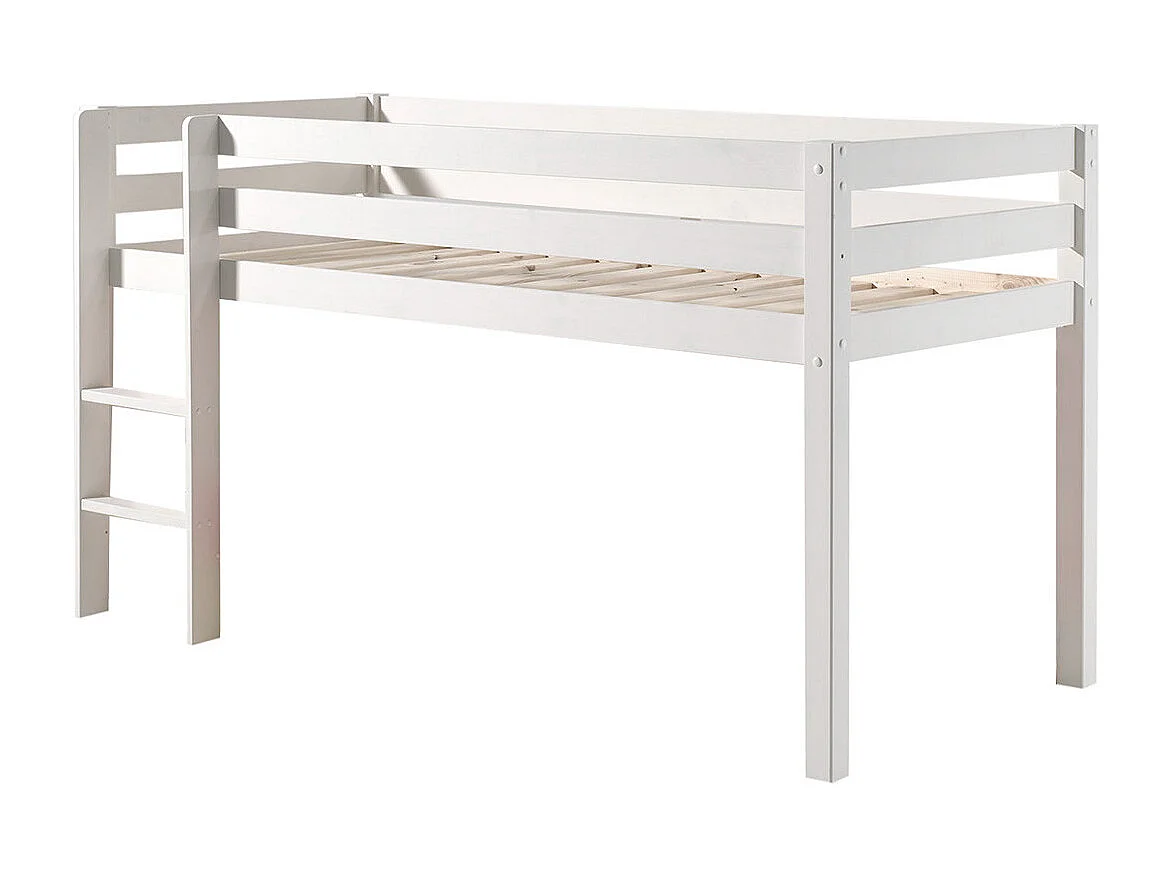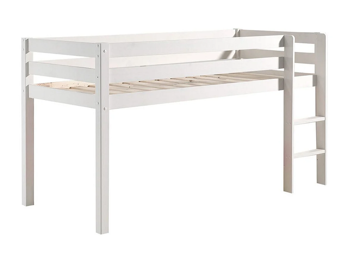 SLEEPY - Lit Mi-Haut en Pin Laqué Blanc 90x200cm avec Échelle Droite