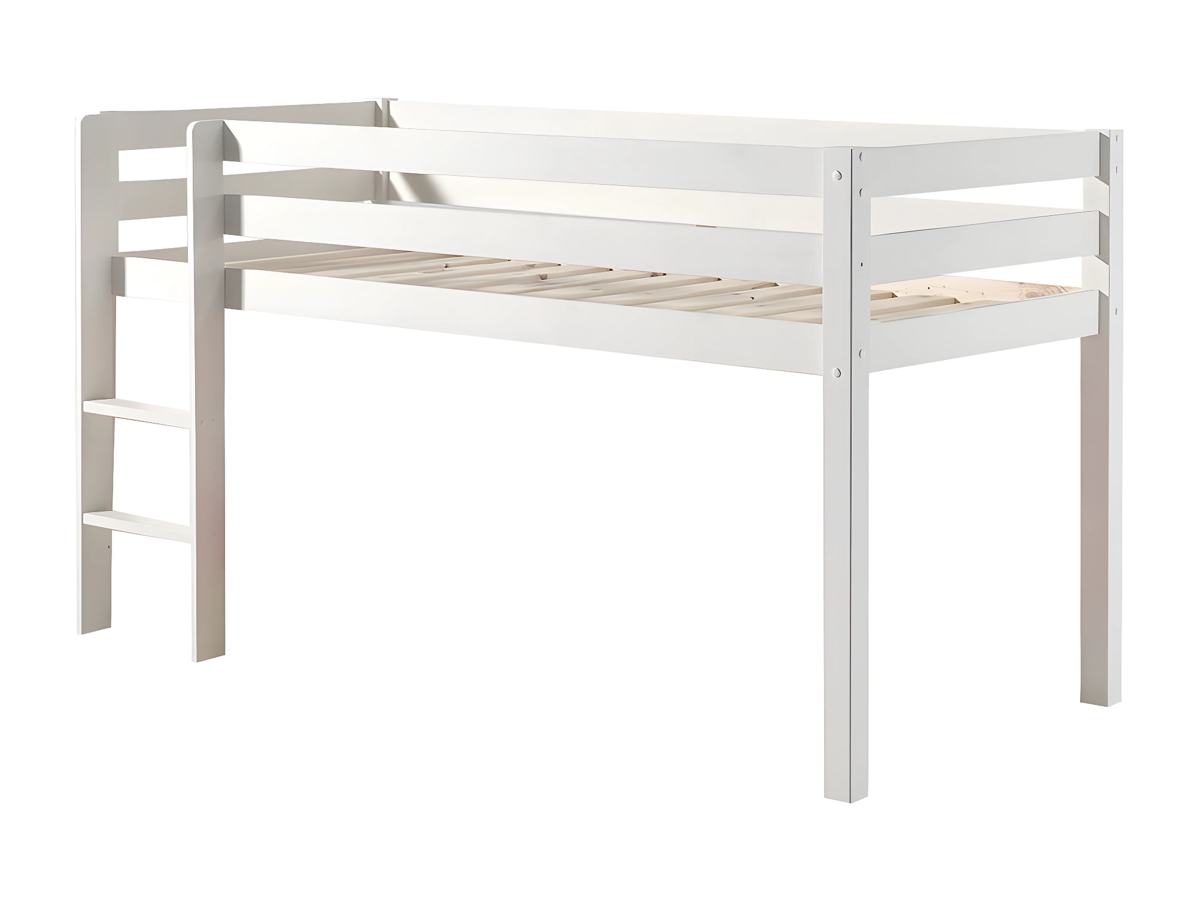 SLEEPY - Lit Mi-Haut en Pin Laqué Blanc 90x200cm Housse Pompiers