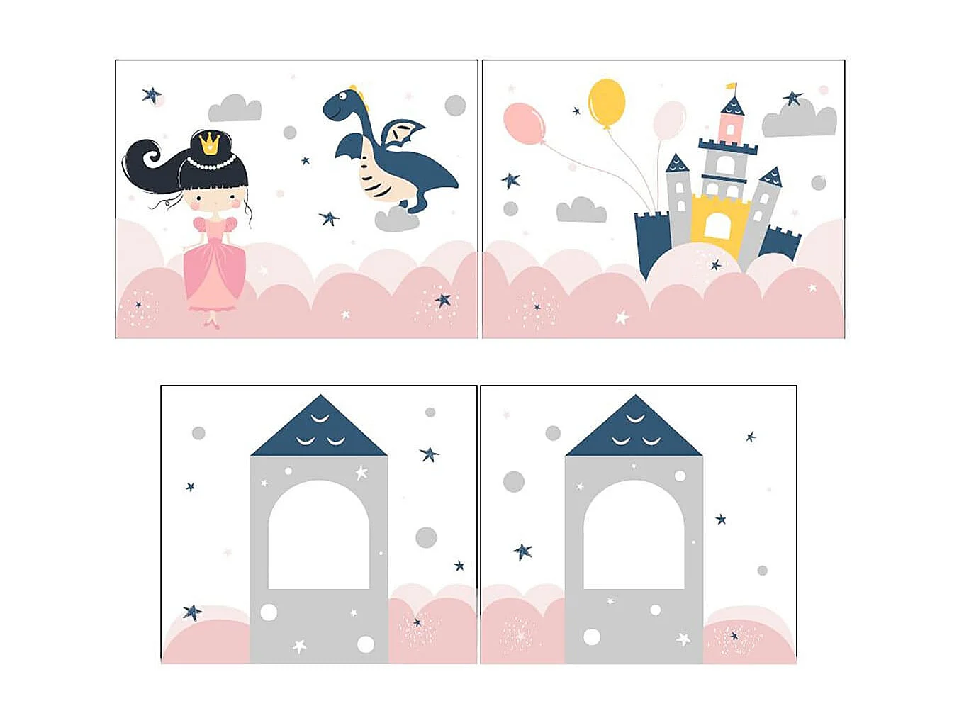 SLEEPY - Lit Mi-Haut en Pin Naturel 90x200cm Housse Princesse