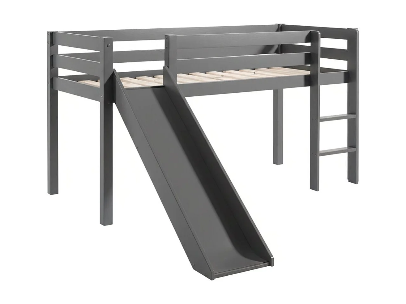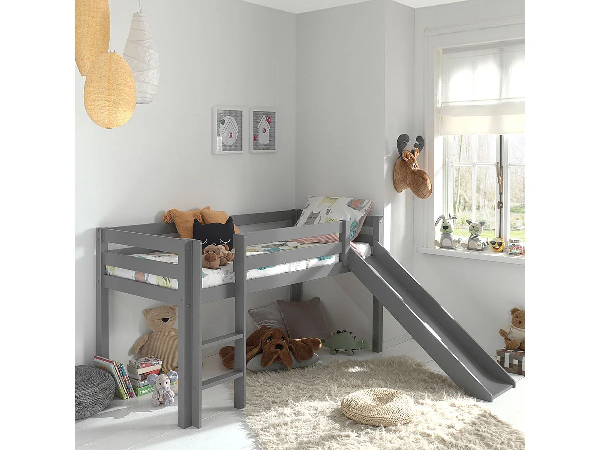 SLEEPY - Lit Mi-Haut Tobogan en Pin Laqué Gris 90x200cm