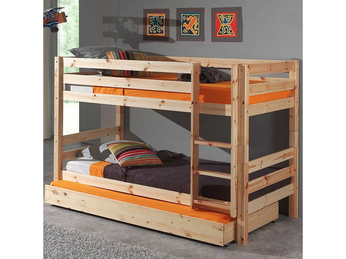SLEEPY - Lit Superposé H140 en Pin Naturel 90x200cm avec Lit-Tiroir