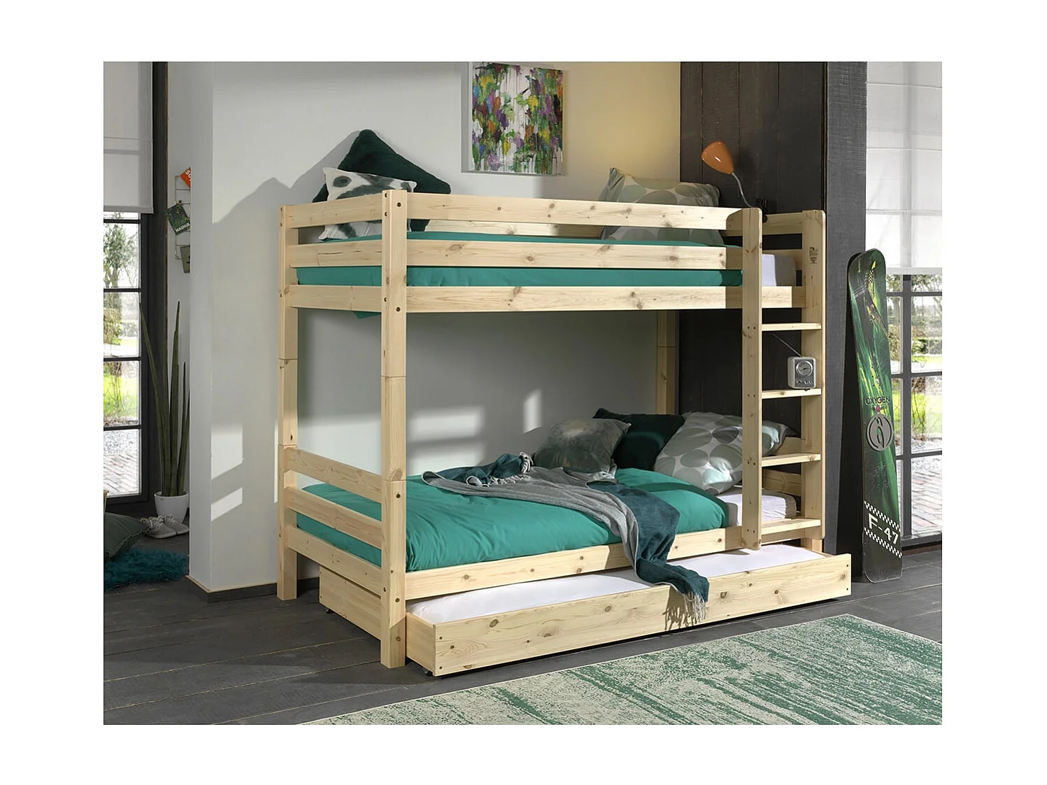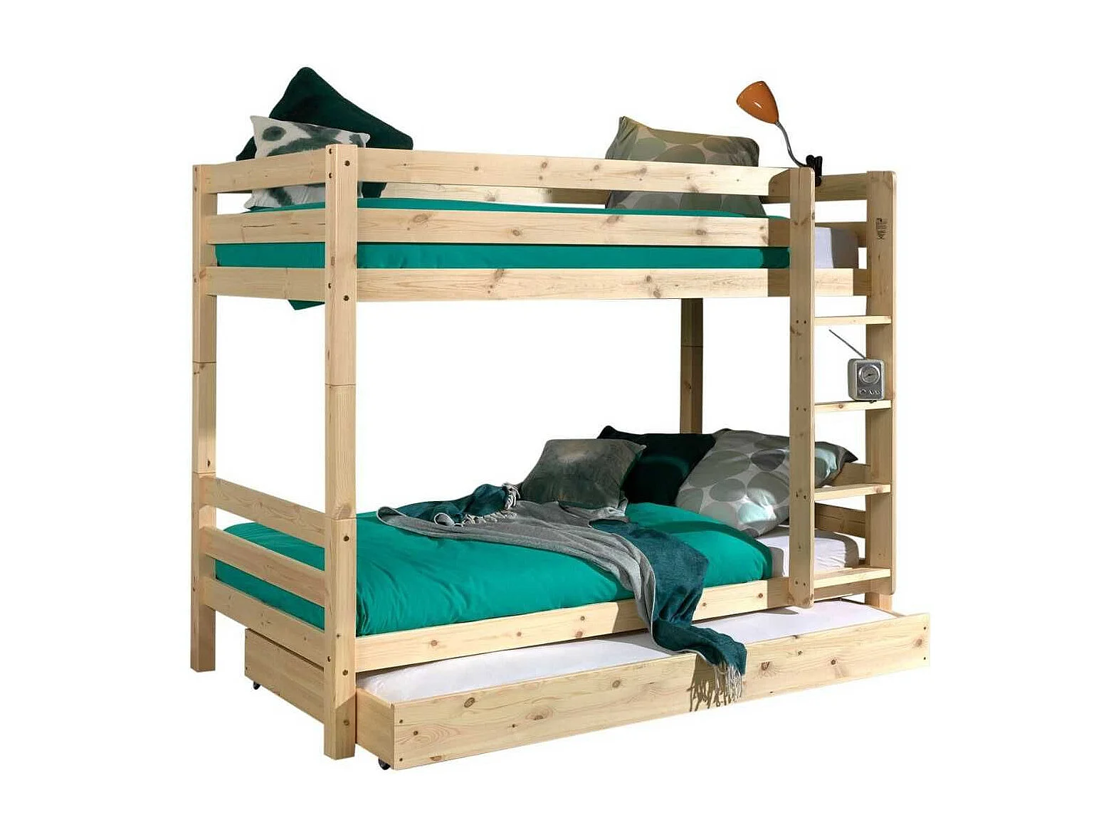 SLEEPY - Lit Superposé H160 en Pin Naturel 90x200cm avec Lit-Tiroir