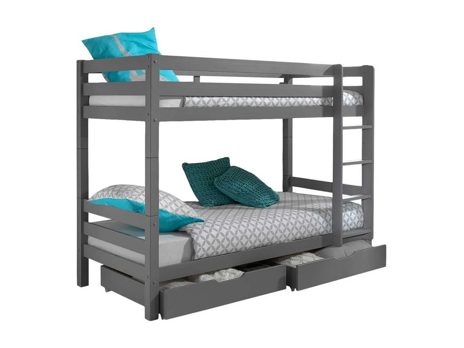 SLEEPY - Lit Superposé H160 Laqué Gris 90x200cm avec 2 Tiroirs