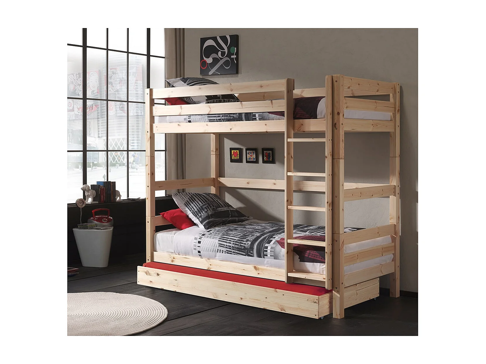 SLEEPY - Lit Superposé H180 en Pin Naturel 90x200cm avec Lit-Tiroir