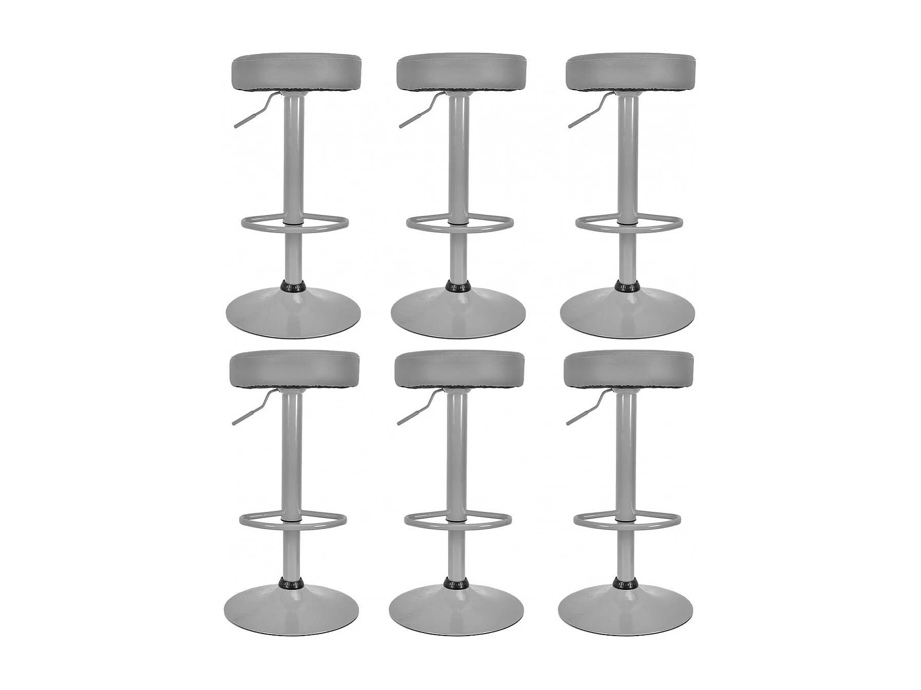 SMIDO - Lot de 6 Tabourets Réglables Simili Gris