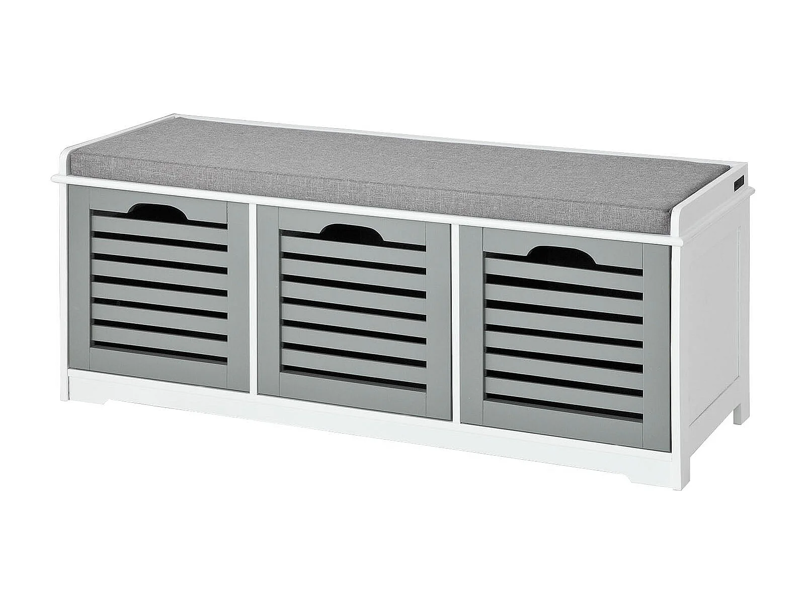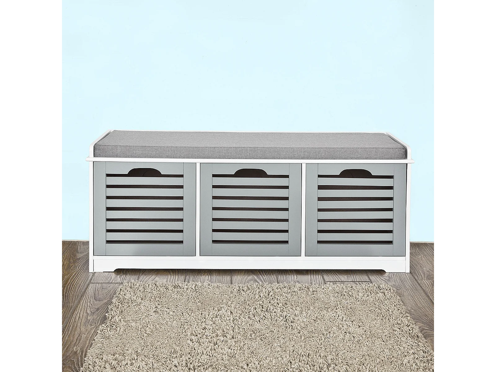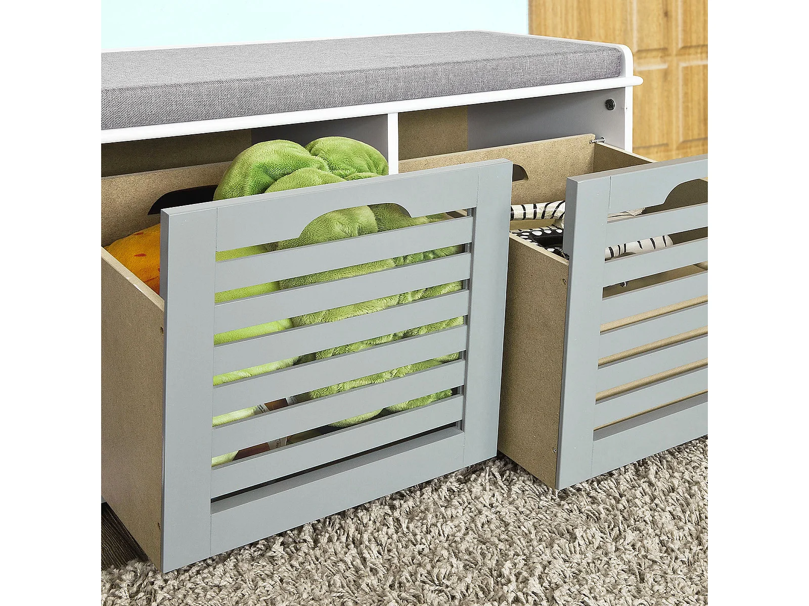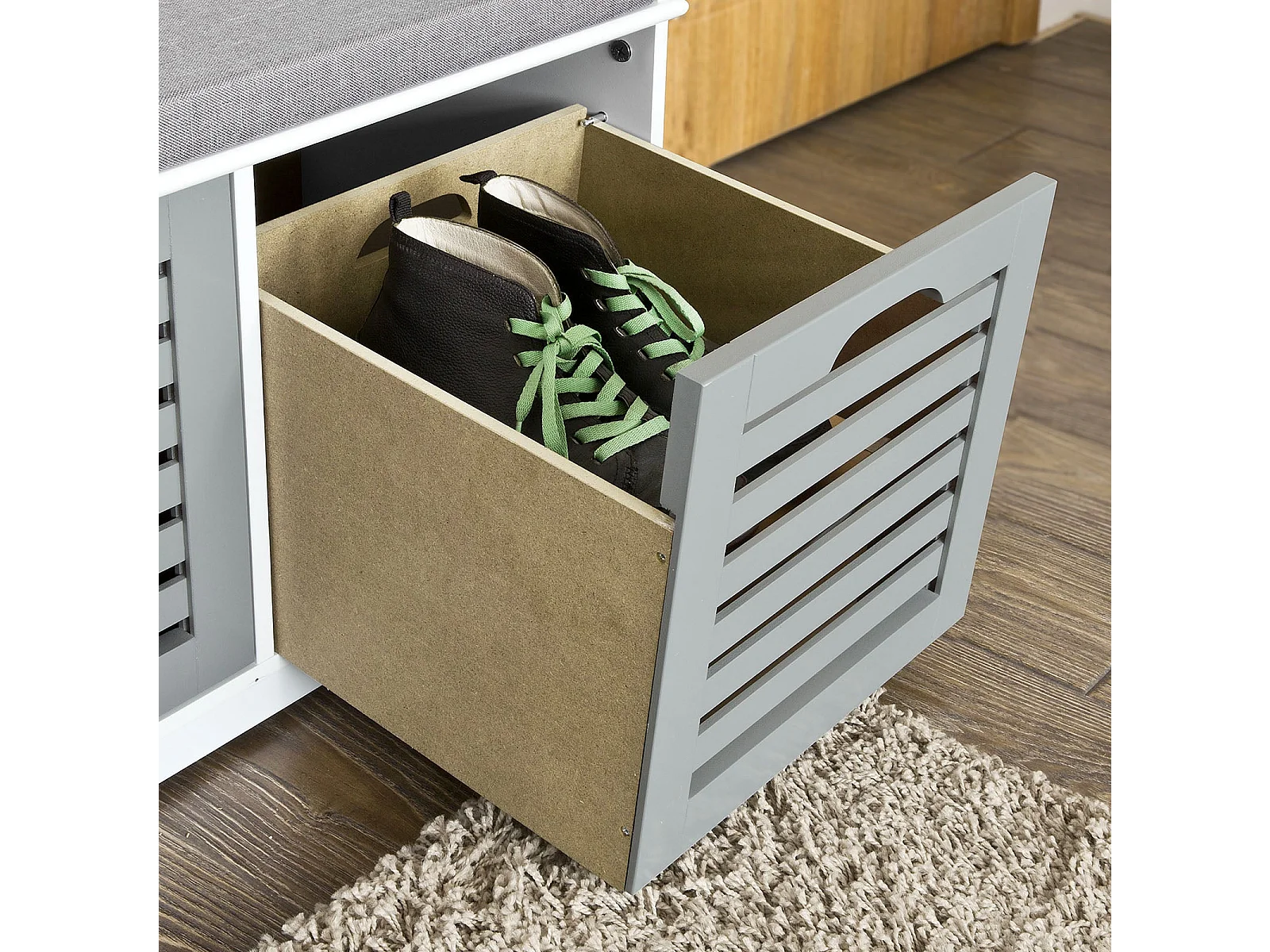 SoBuy Armoire à Chaussures Moderne avec Coussins et Paniers, Blanc Gris