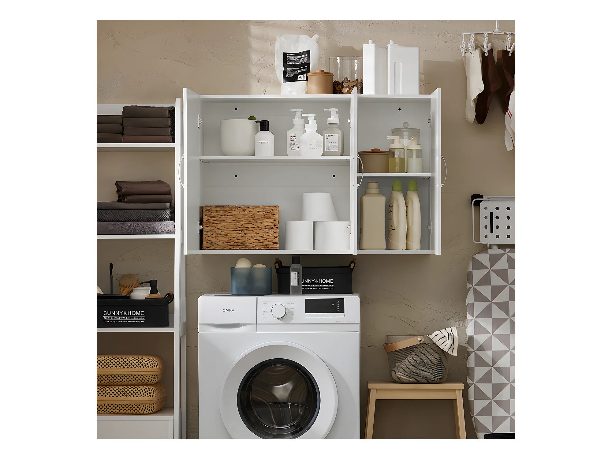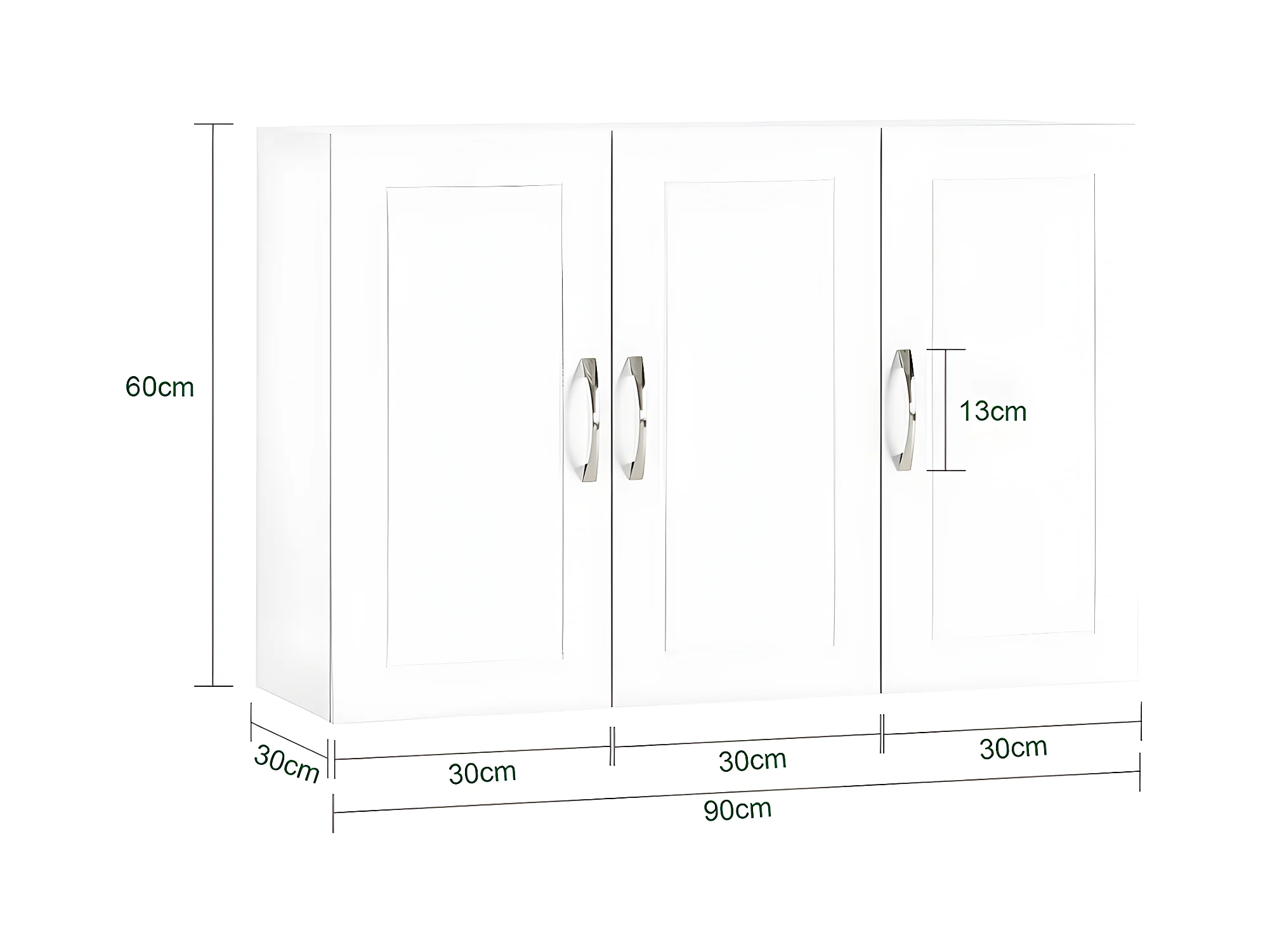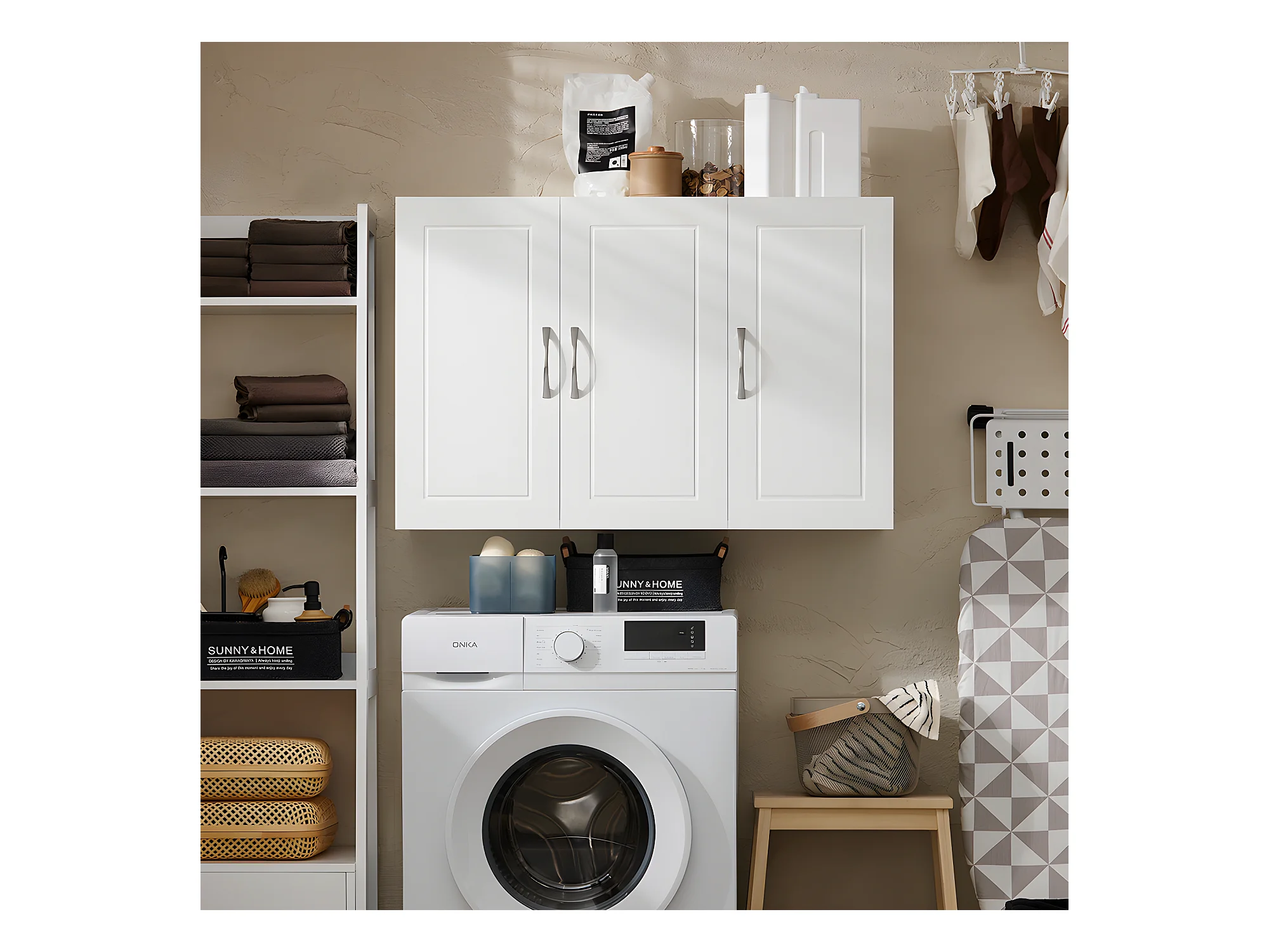 SoBuy Armoire Murale de Salle de Bain, Placard de Rangement, Meuble de Rangement Suspendu, Meuble Haut avec 3 Portes, 90x30x60 cm, Blanc, FRG231-L-W