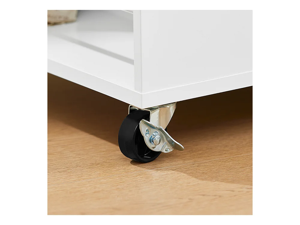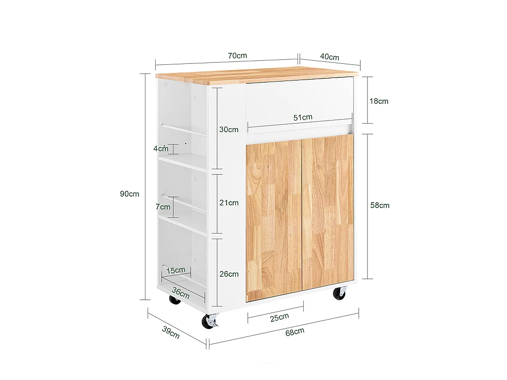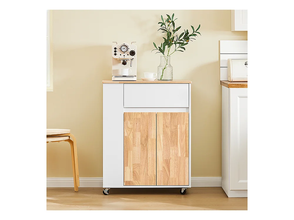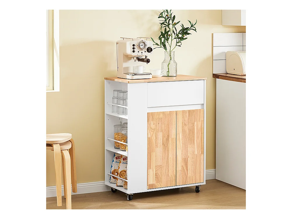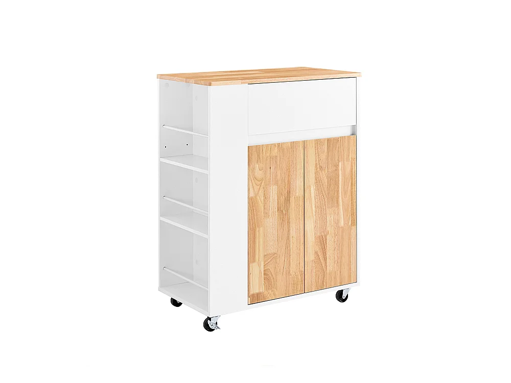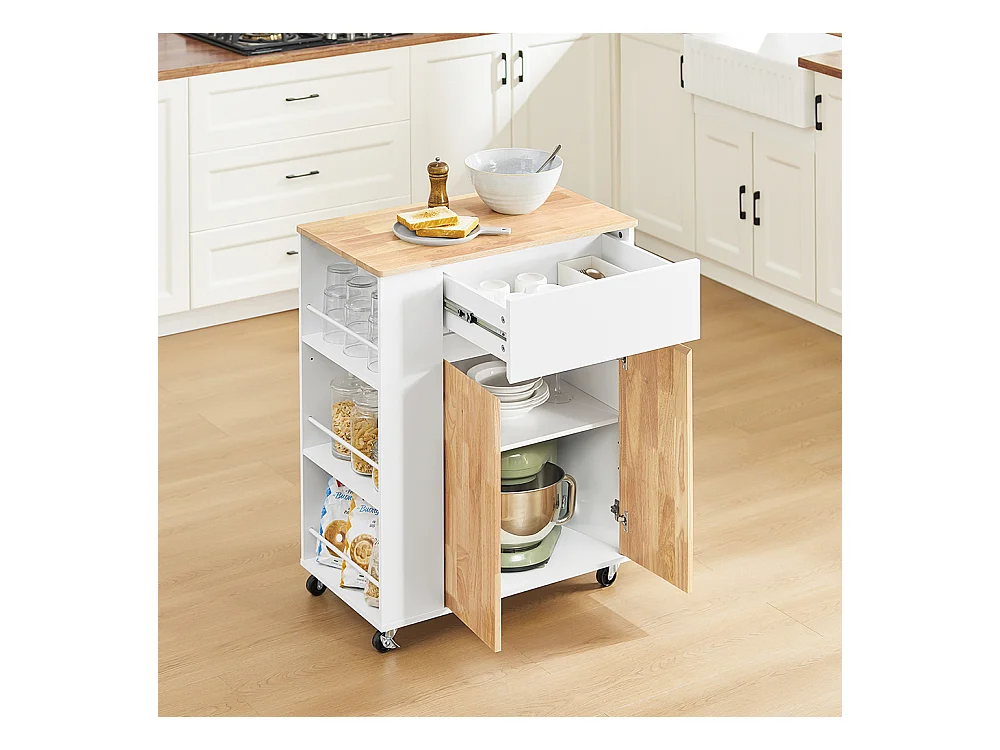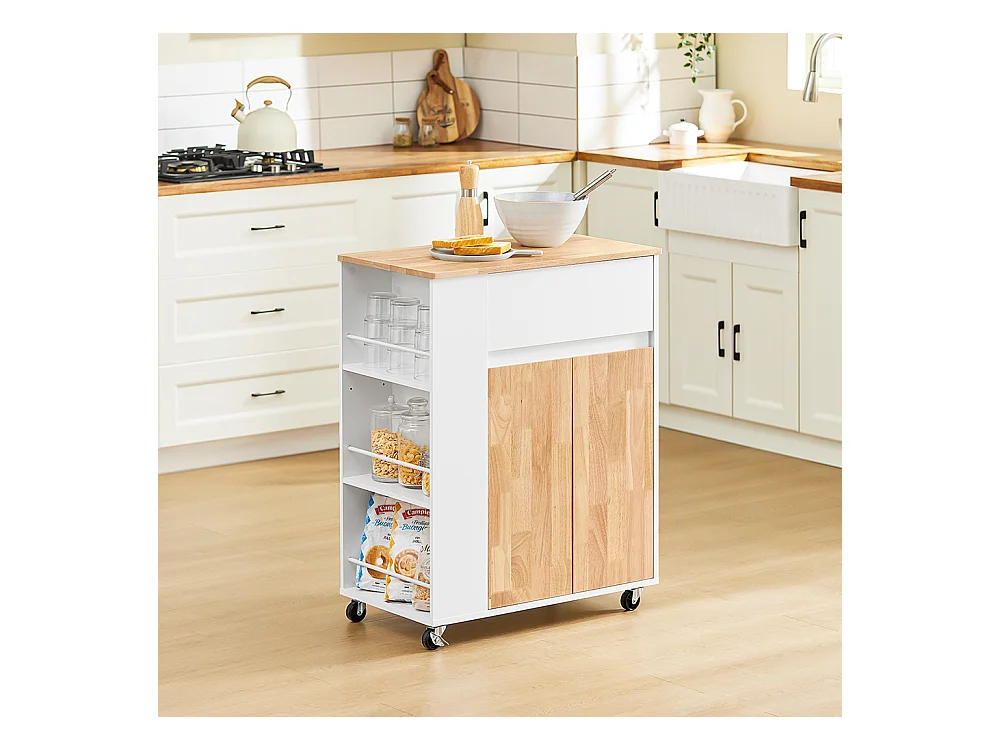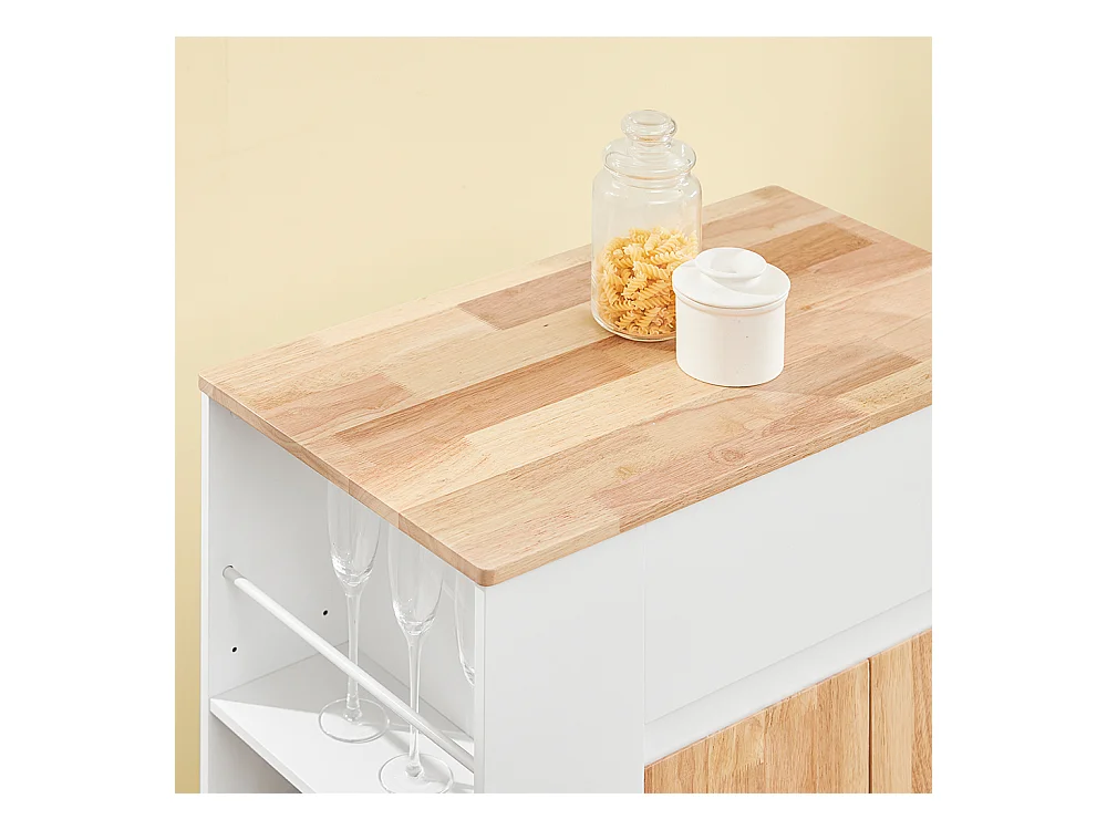 SoBuy Chariot de cuisine îlot avec plan de travail en hévéa, tiroirs, blanc
