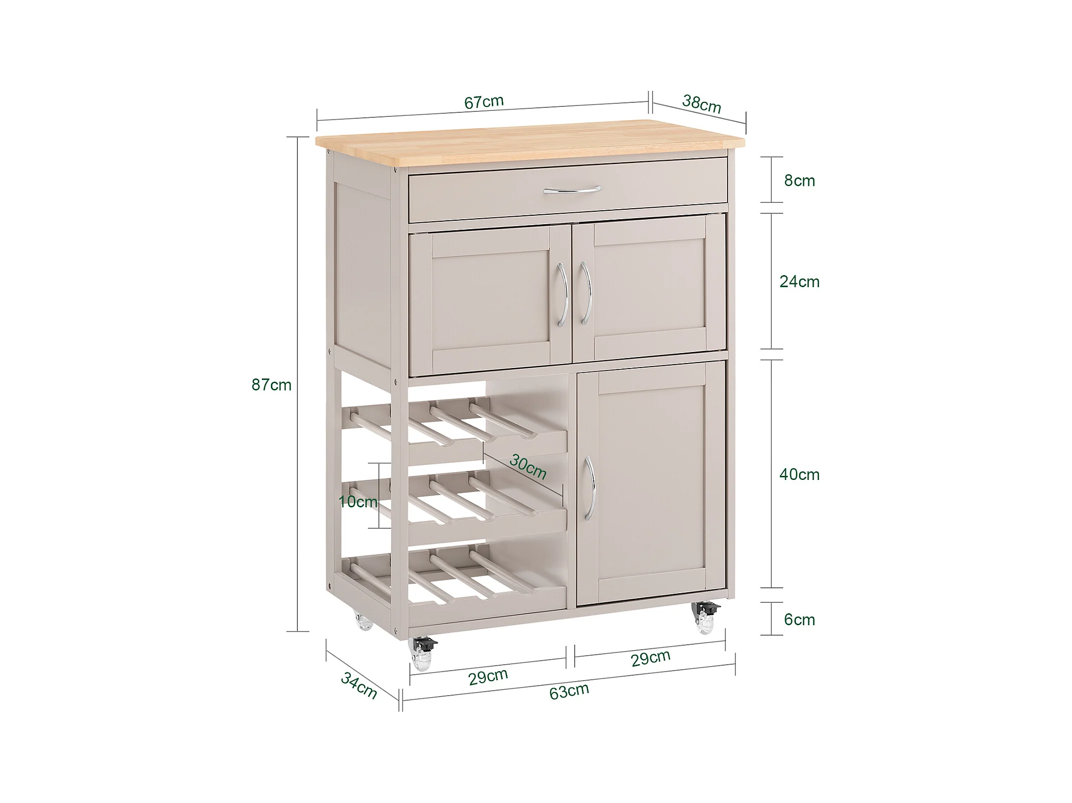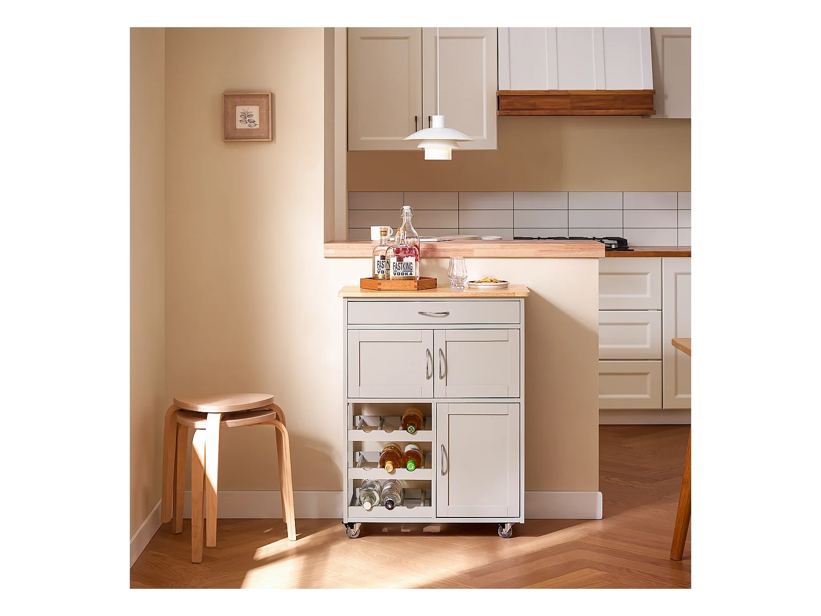 SoBuy FKW45-KA - Chariot de cuisine avec tiroir, portes et porte-bouteille L67cm x L37.5cm x ...