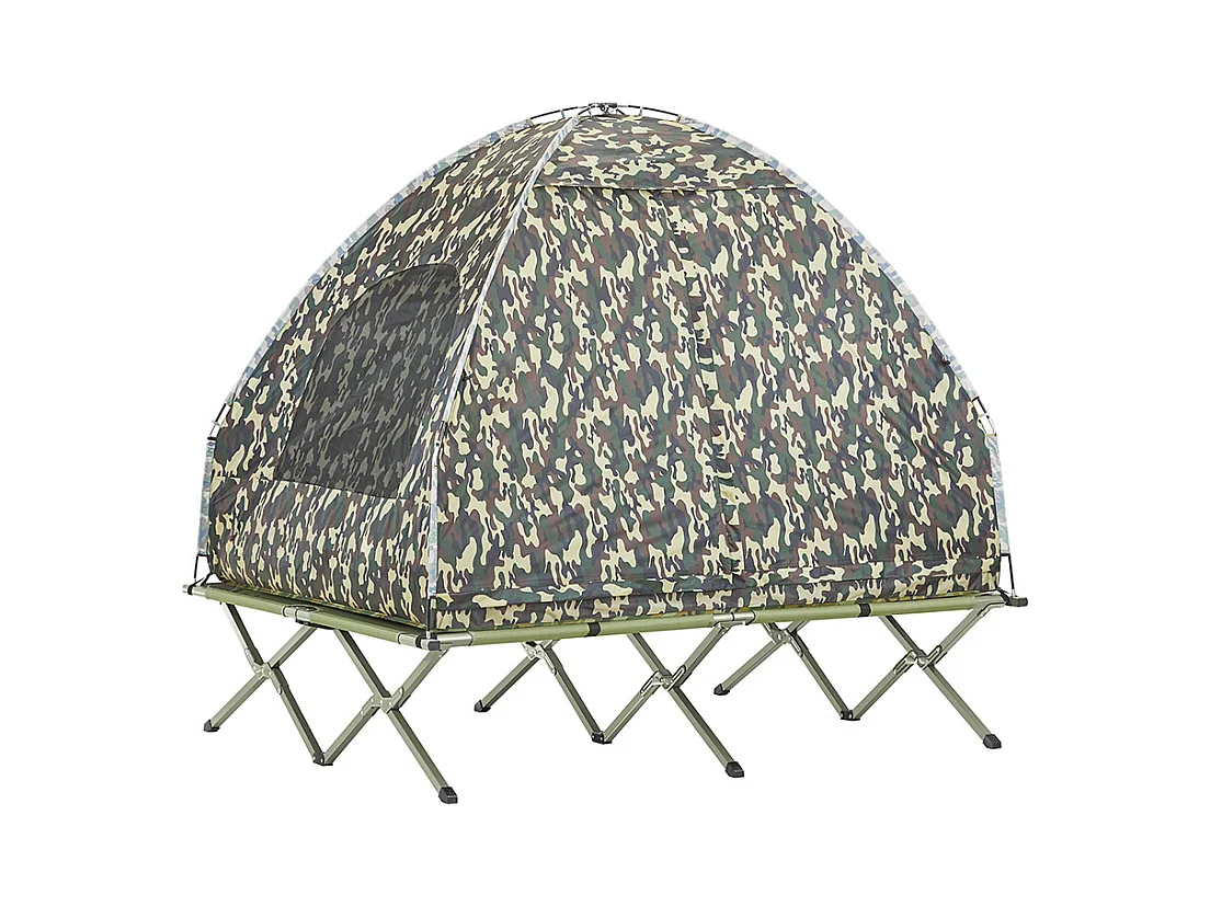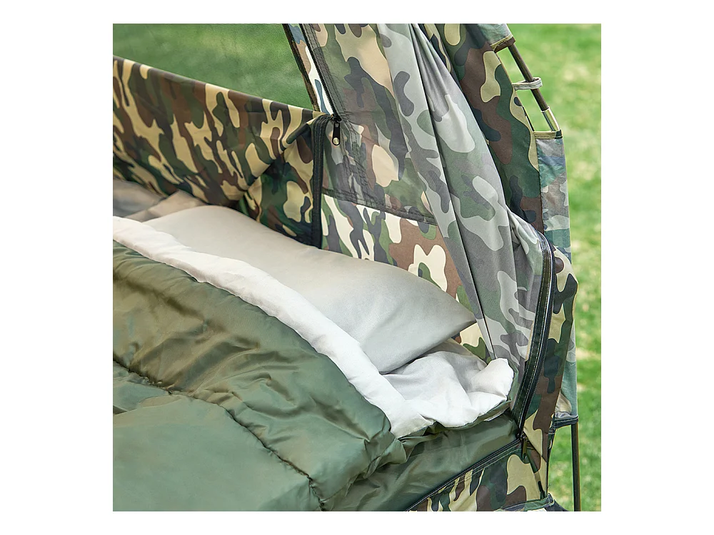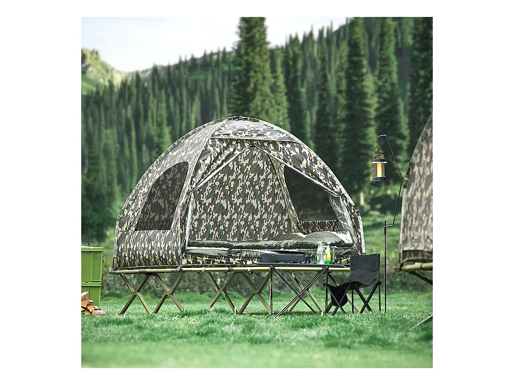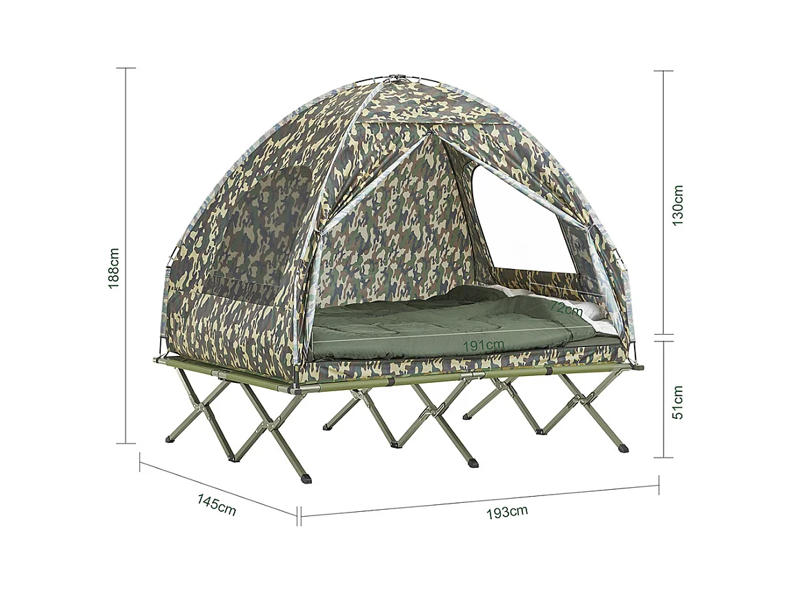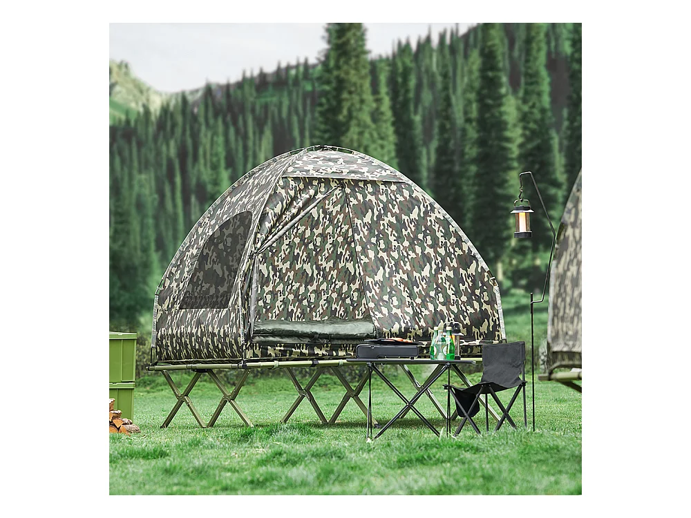 SoBuy Tente de Camping 4 en 1 Pliable Lit Surélevé, Toit, Sac de Couchage, Matelas Gonflable -2 Personnes - Idéal pour Randonnée, Festival et Plein Air OGS32-L-TN