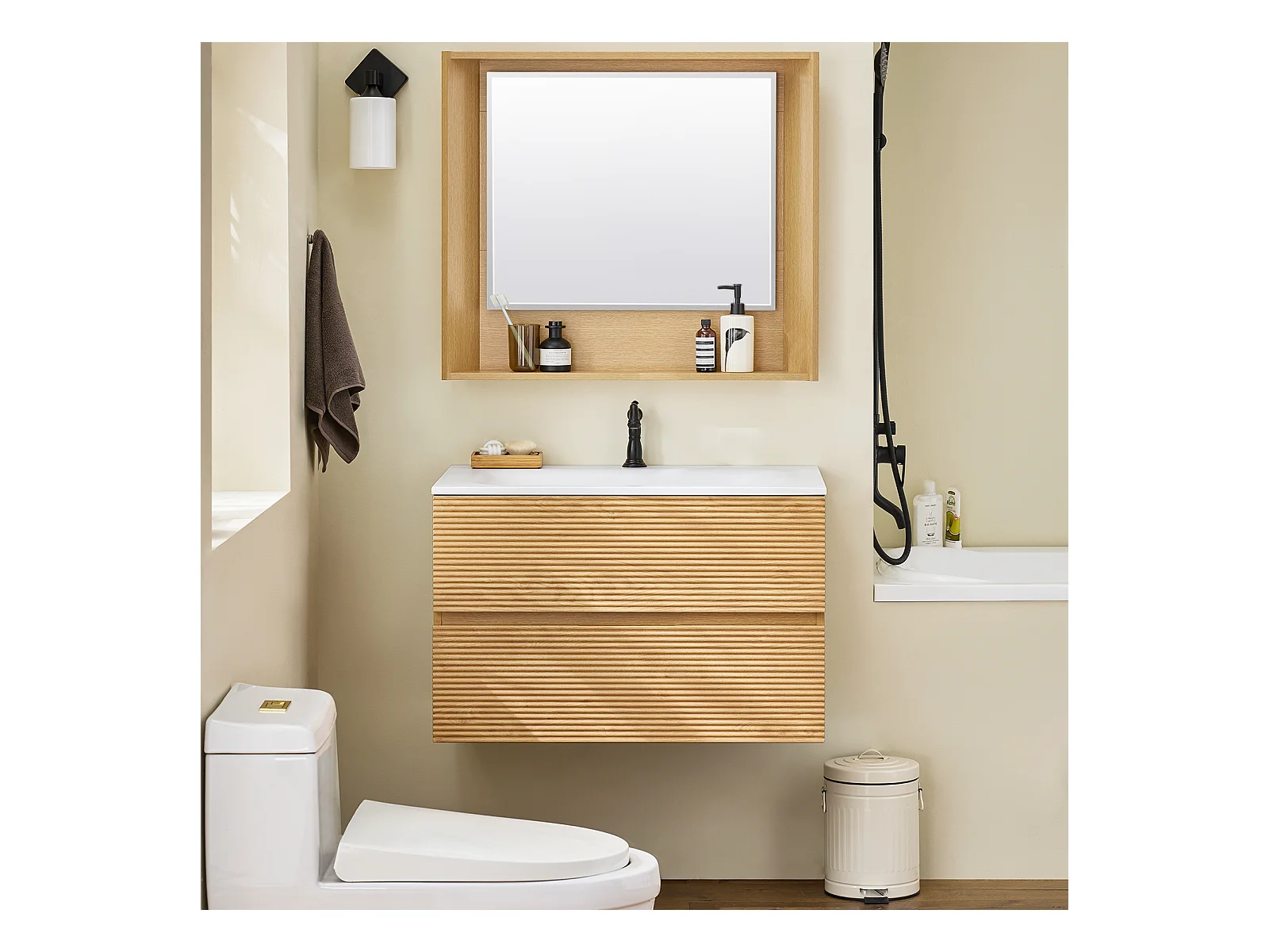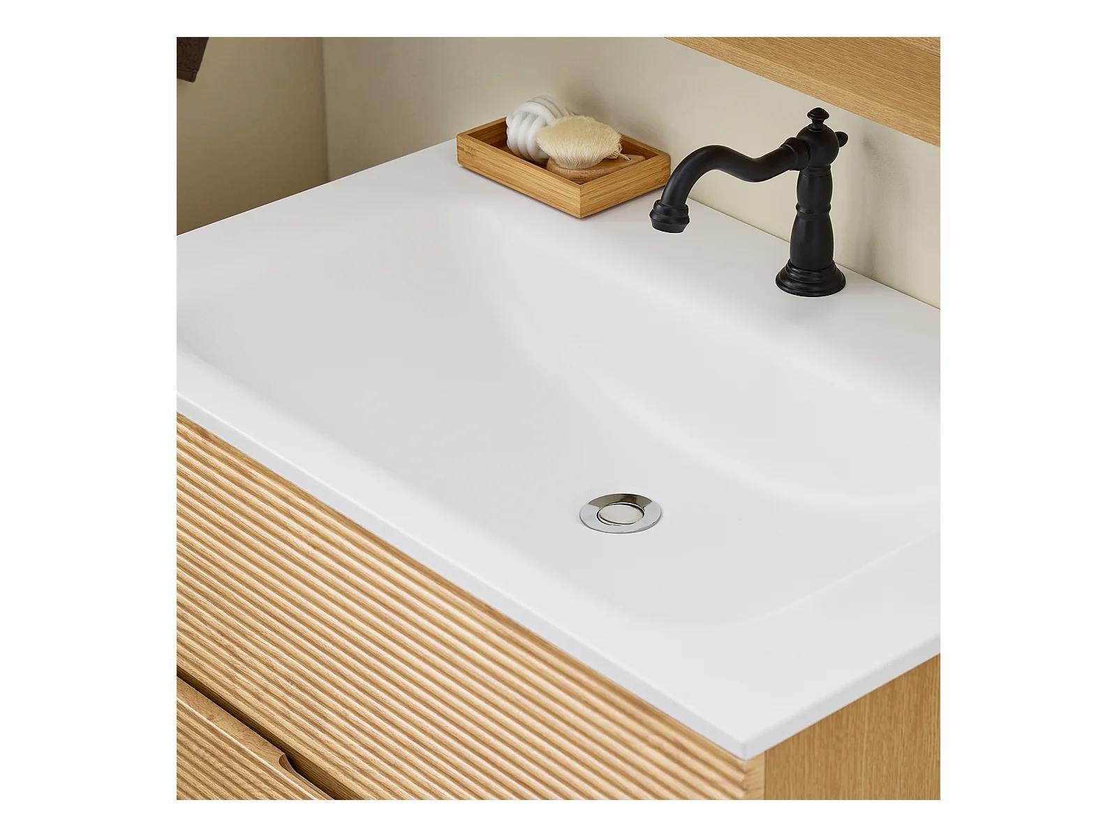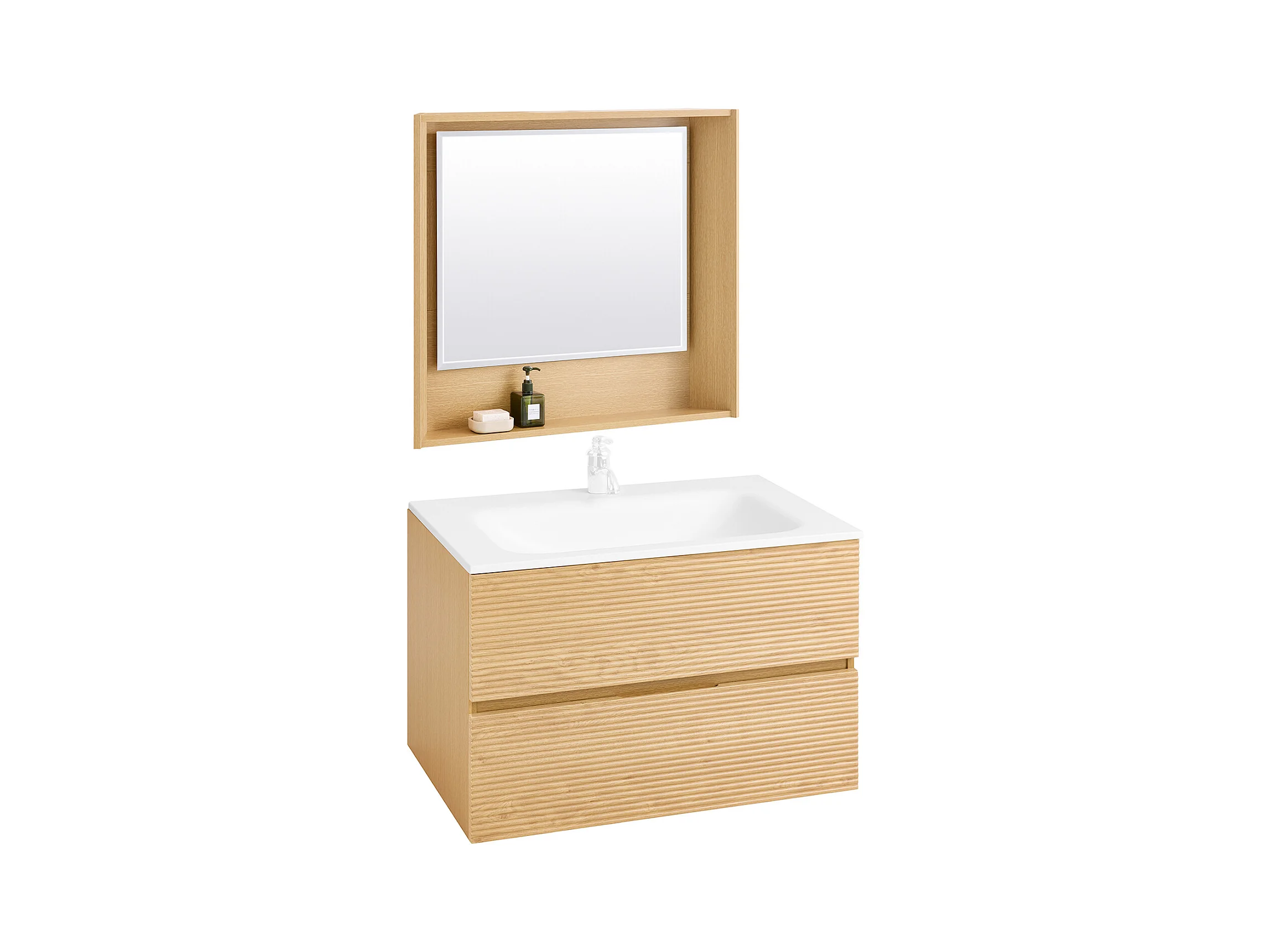 Ensemble meuble simple vasque encastrée 80cm et colonne Teren Bois