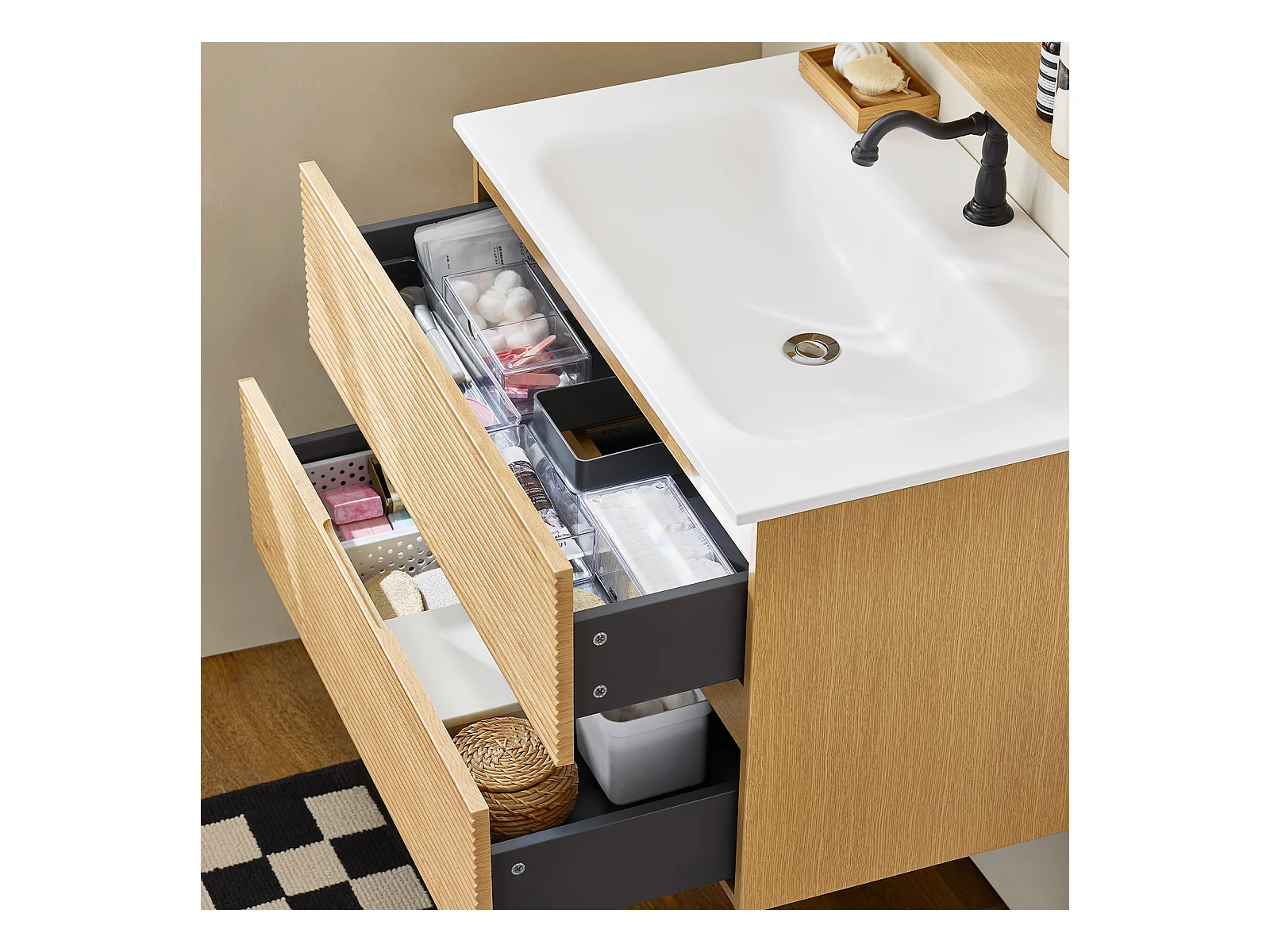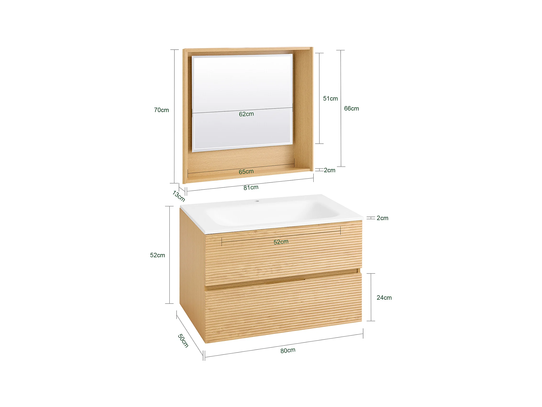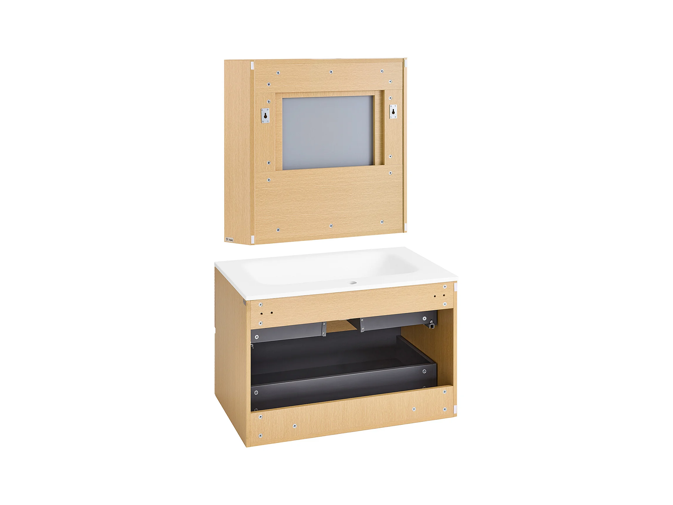 Ensemble meuble simple vasque encastrée 80cm et colonne Teren Bois