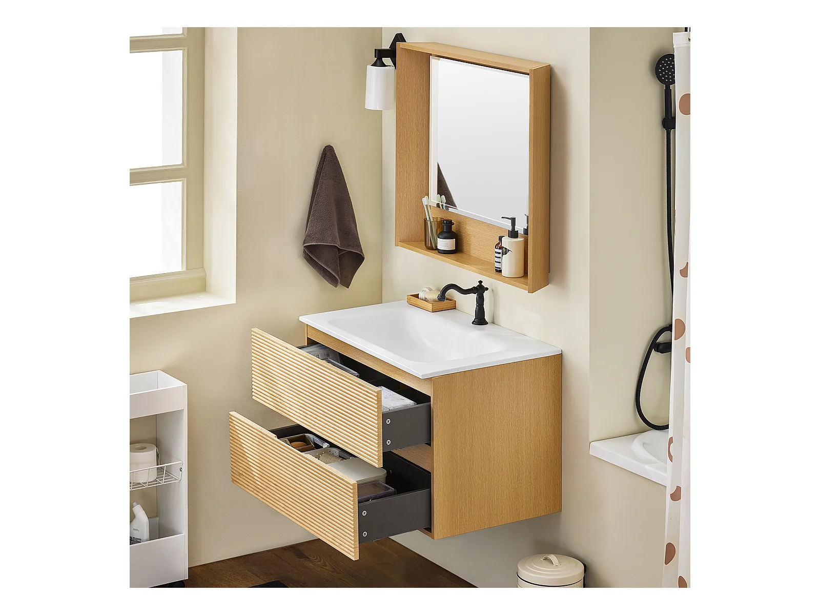 Boston - Meuble sous lavabo et miroir (L/H/P : 57x44x33 cm) en mélaminé chêne, vasque non incluse