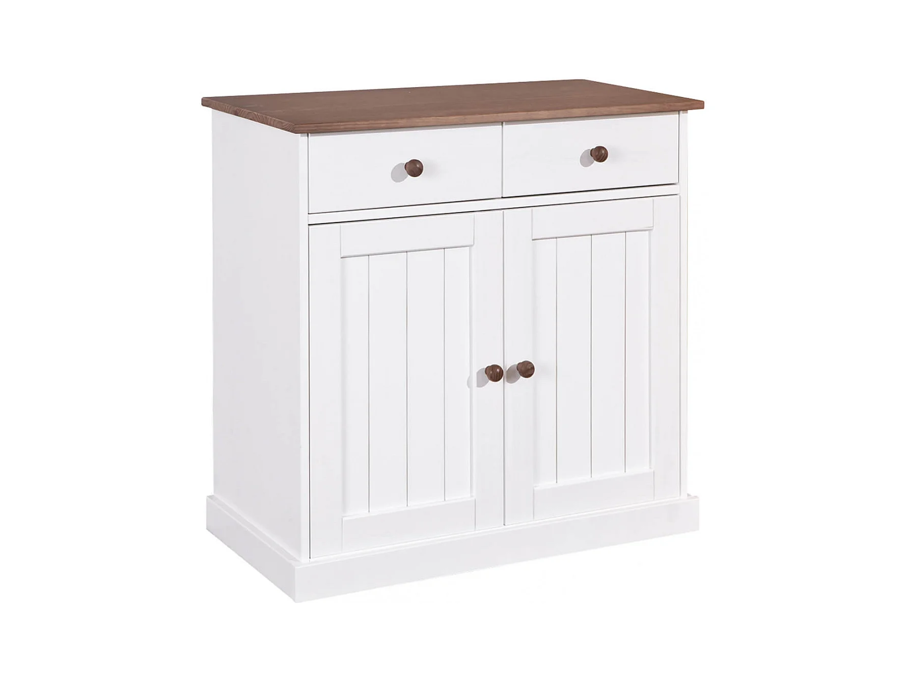 SOCOA - Buffet 2 Portes 2 Tiroirs Bois Massif Vernis Sepia et Blanc