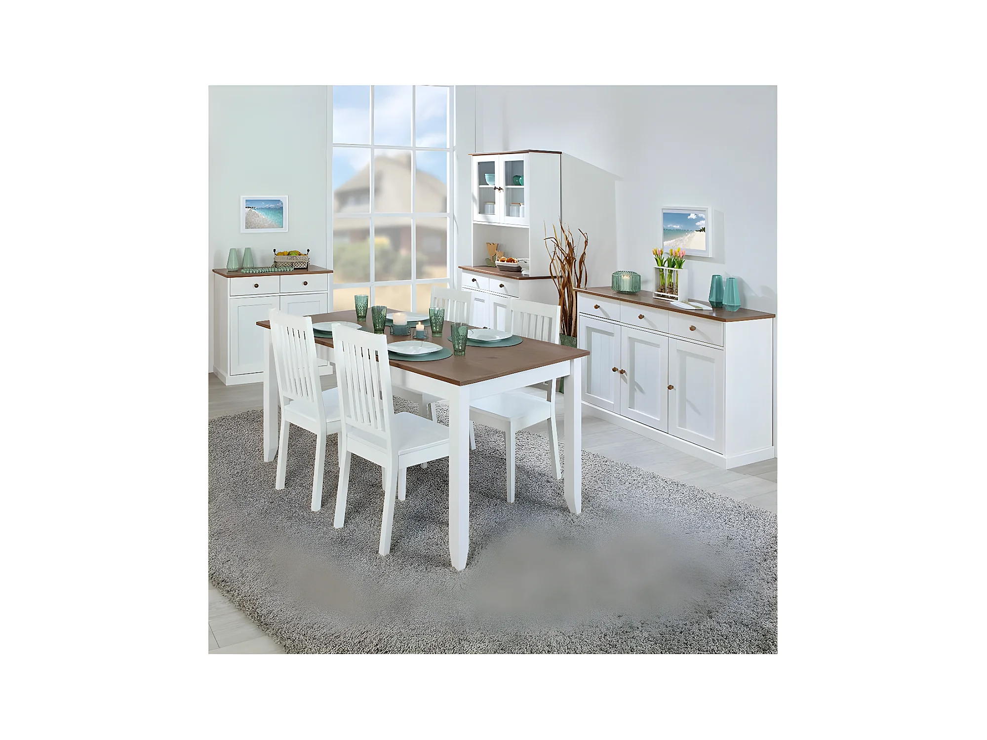 SOCOA - Pack Table 160cm + 2 Buffets + Vaisselier 4 Portes