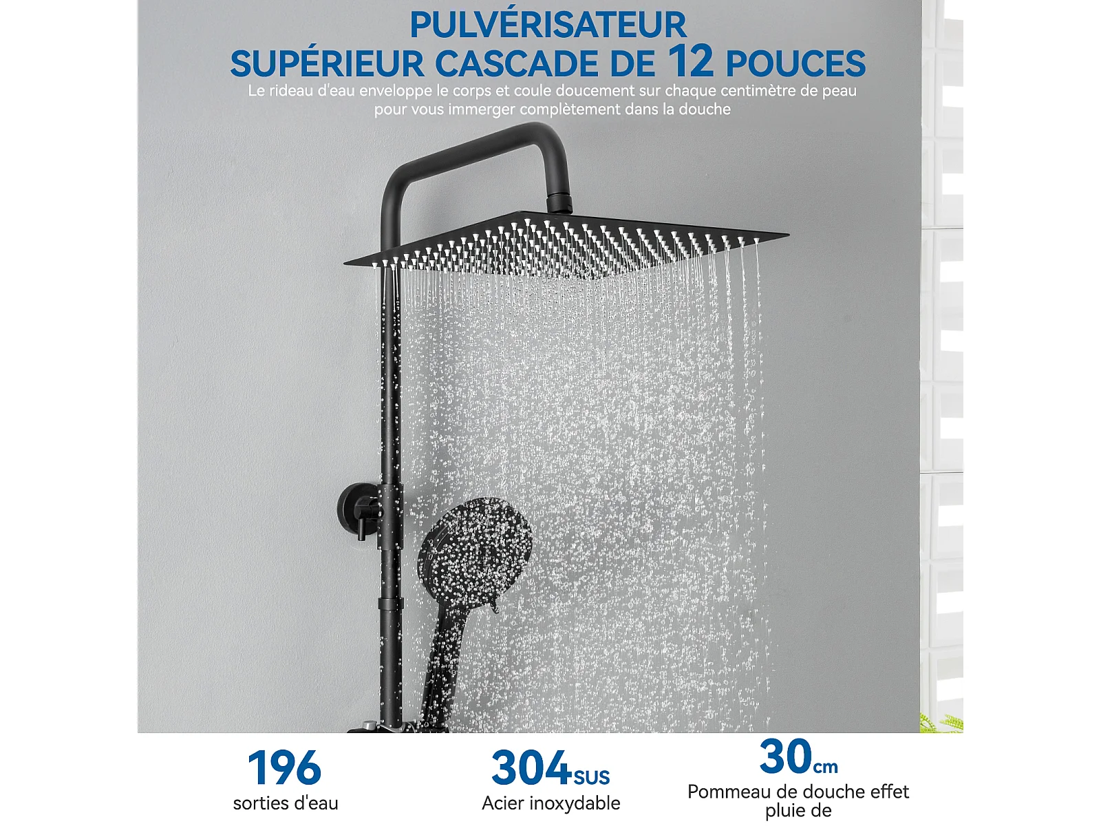 Colonne de Douche sans Robinetterie Réglable Colonne Douche pour Baignoire Ensemble Douche acve Douchette Douche Pommeau de Douche, Noir