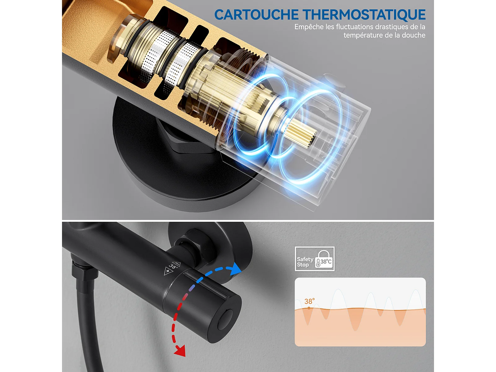 SOFETIY MAX Colonne de Douche Noir Thermostatique, Ensemble de Douche avec Mitigeur, 5 Fonctions Ensemble de Douche