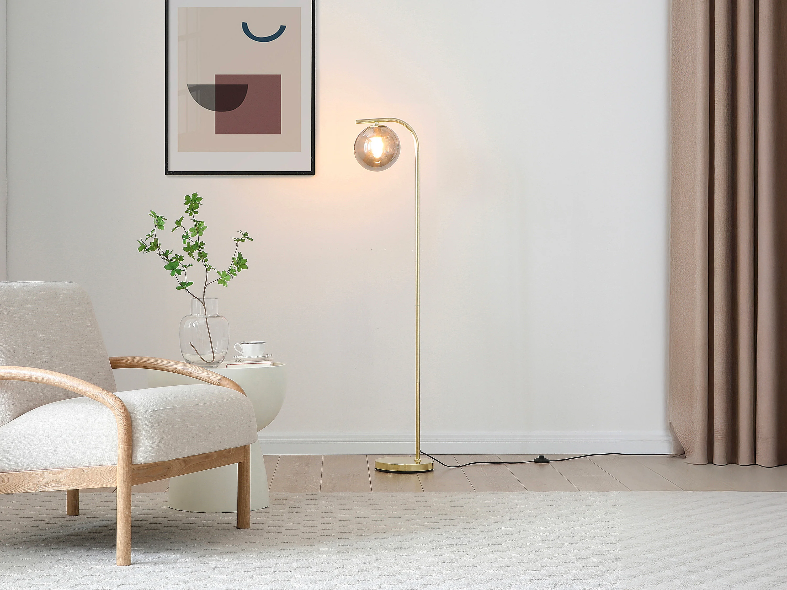 Lampadaire en laiton brossé et verre fumé - D.28 x H.150 cm - Doré - SOFIA