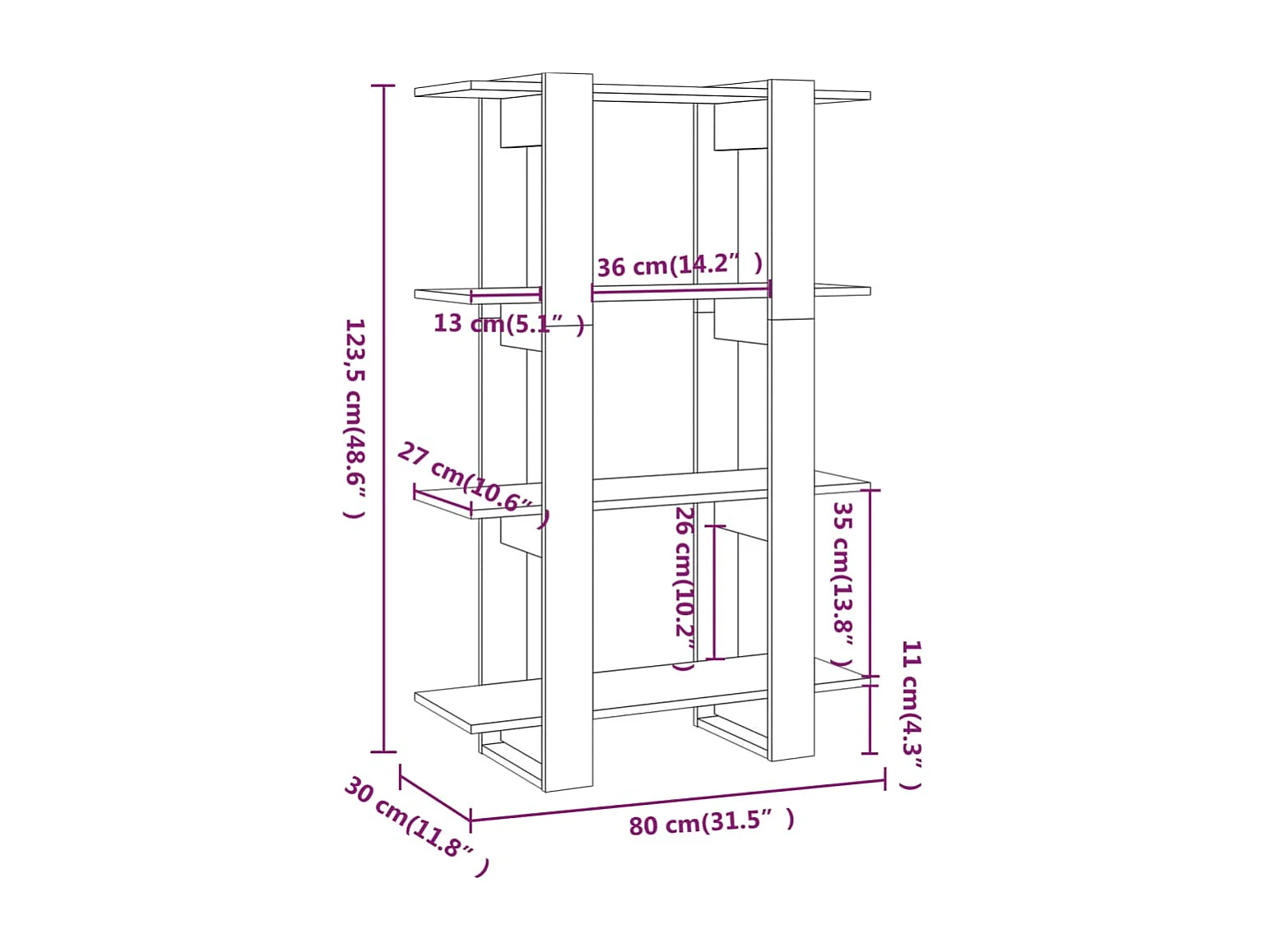 Soledad Bibliothèque/Séparateur de pièce Sonoma gris 80x30x123,5 cm
