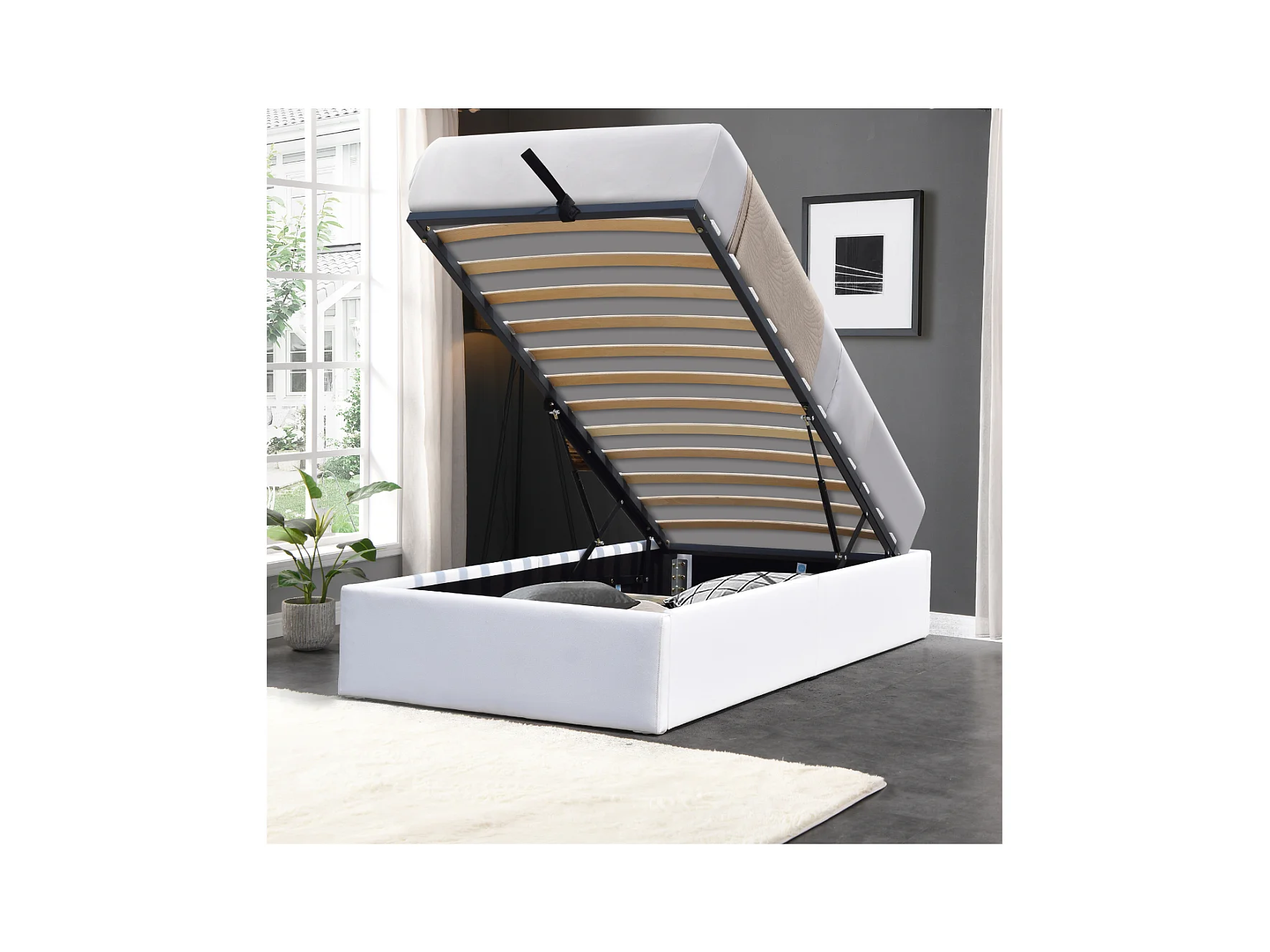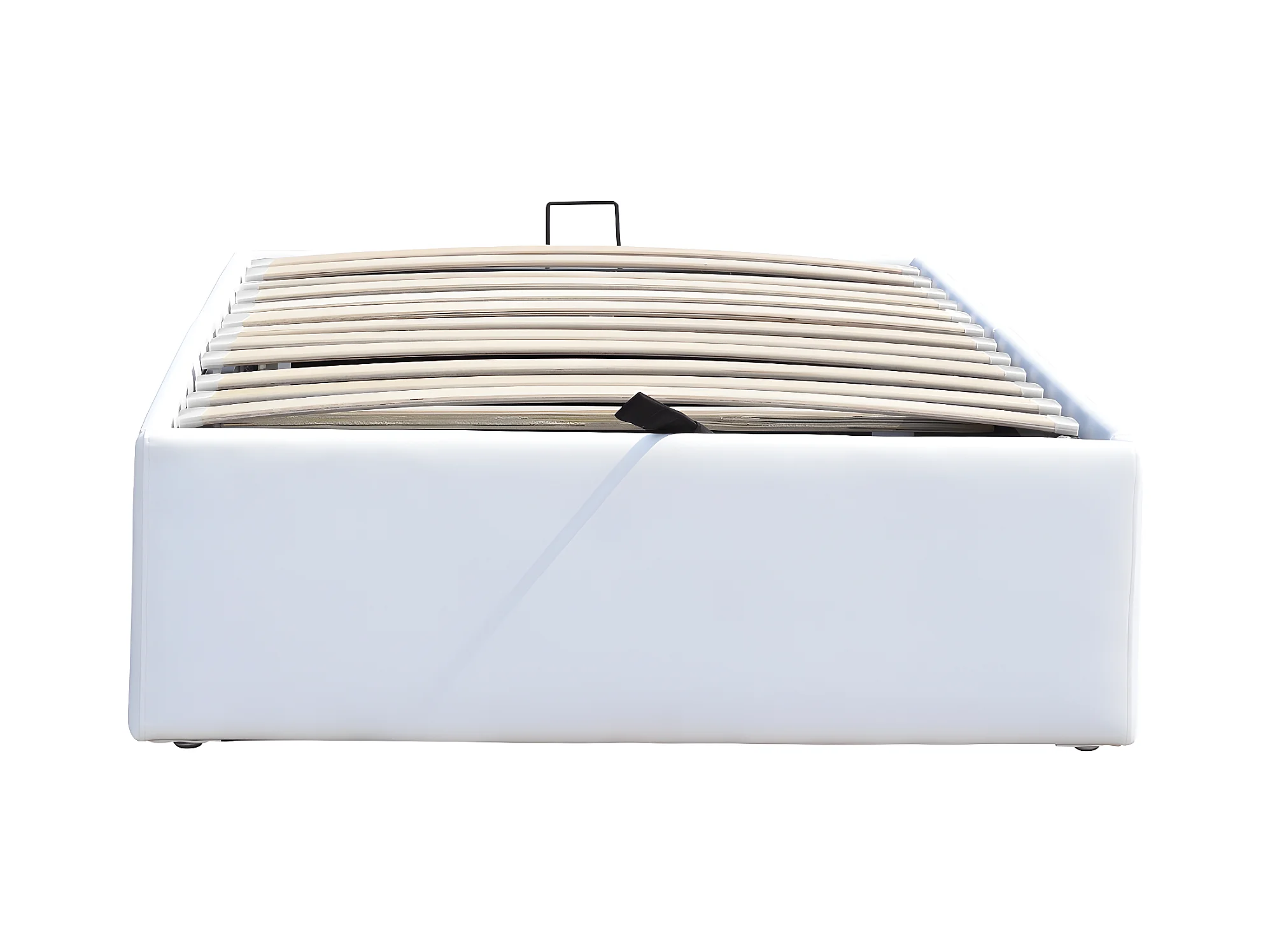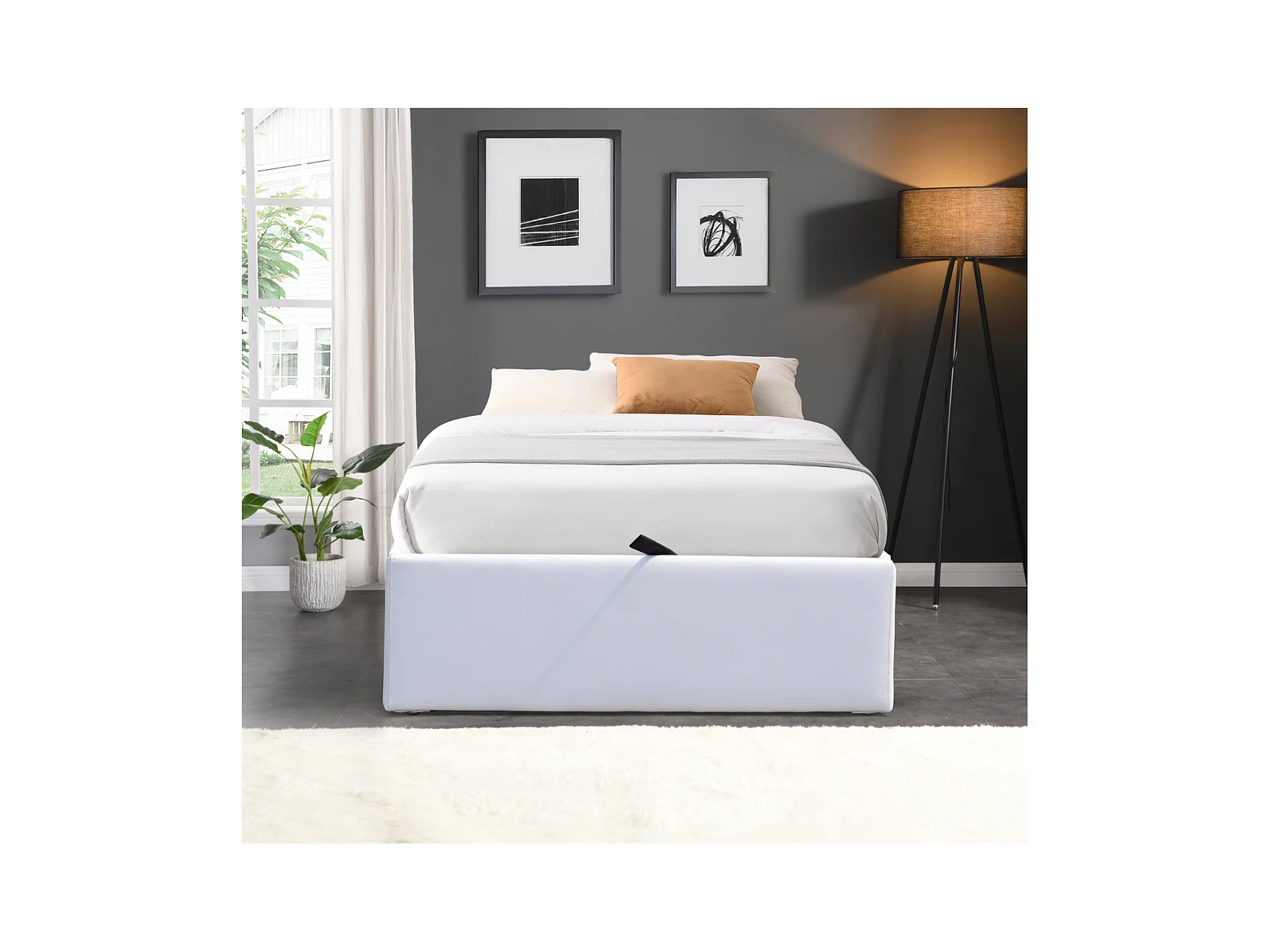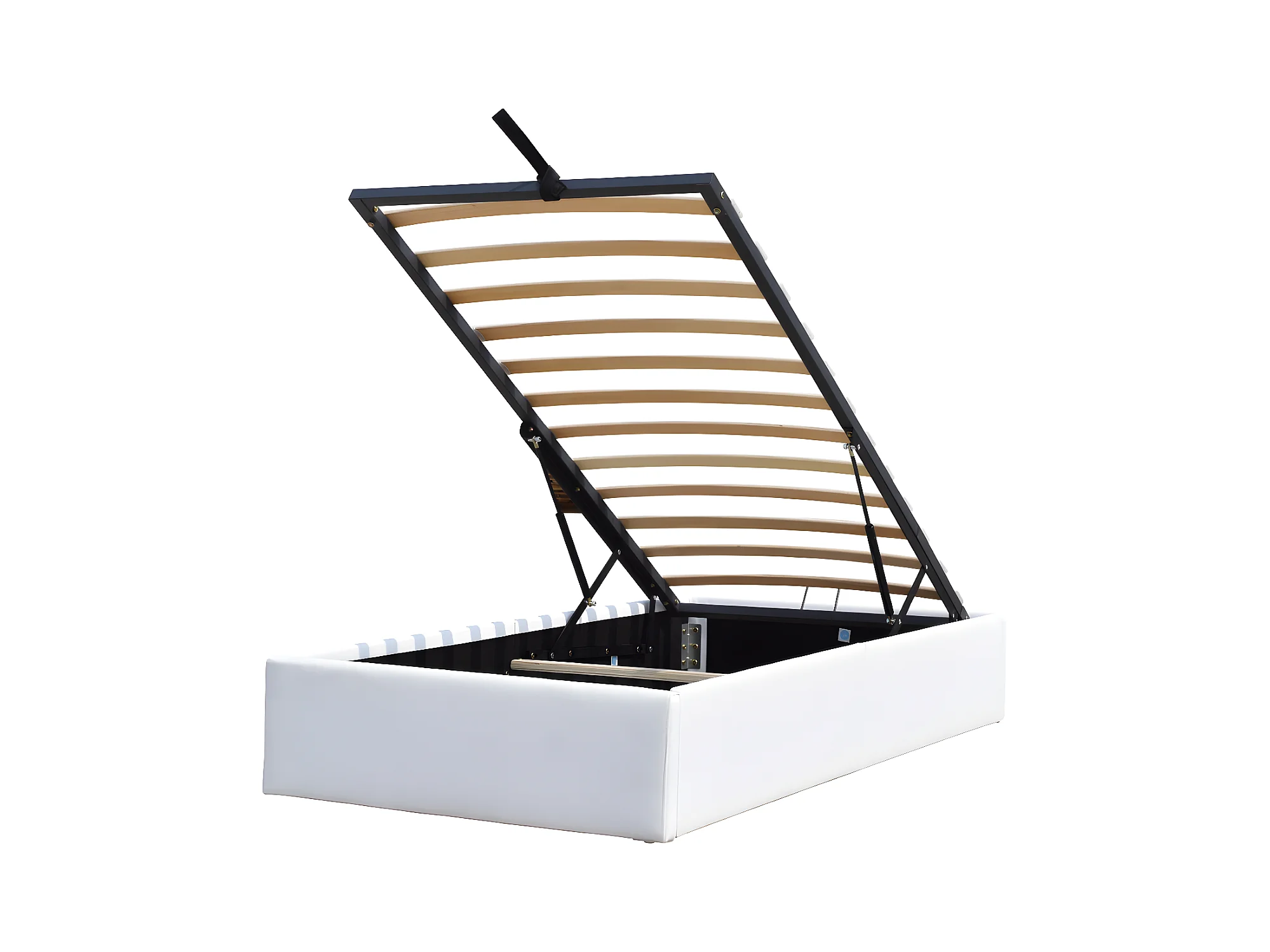 Solide Lit Coffre Blanc pour Matelas 90x190 cm - 12 Lattes - Manon + Pieds - Montage Rapide et Facile - revetement PVC S