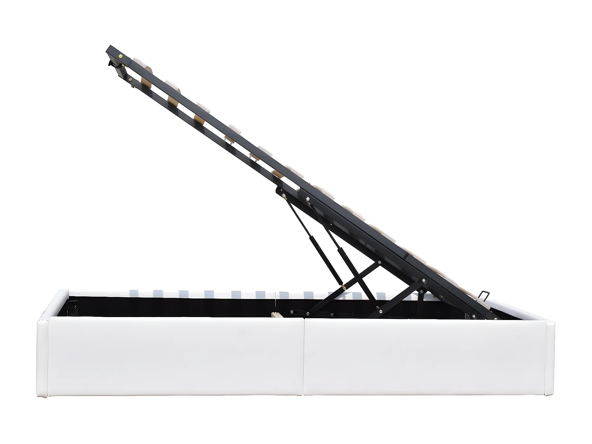 Solide Lit Coffre Blanc pour Matelas 90x200 cm - 12 Lattes - Manon + Pieds - Montage Rapide et Facile - revetement PVC S
