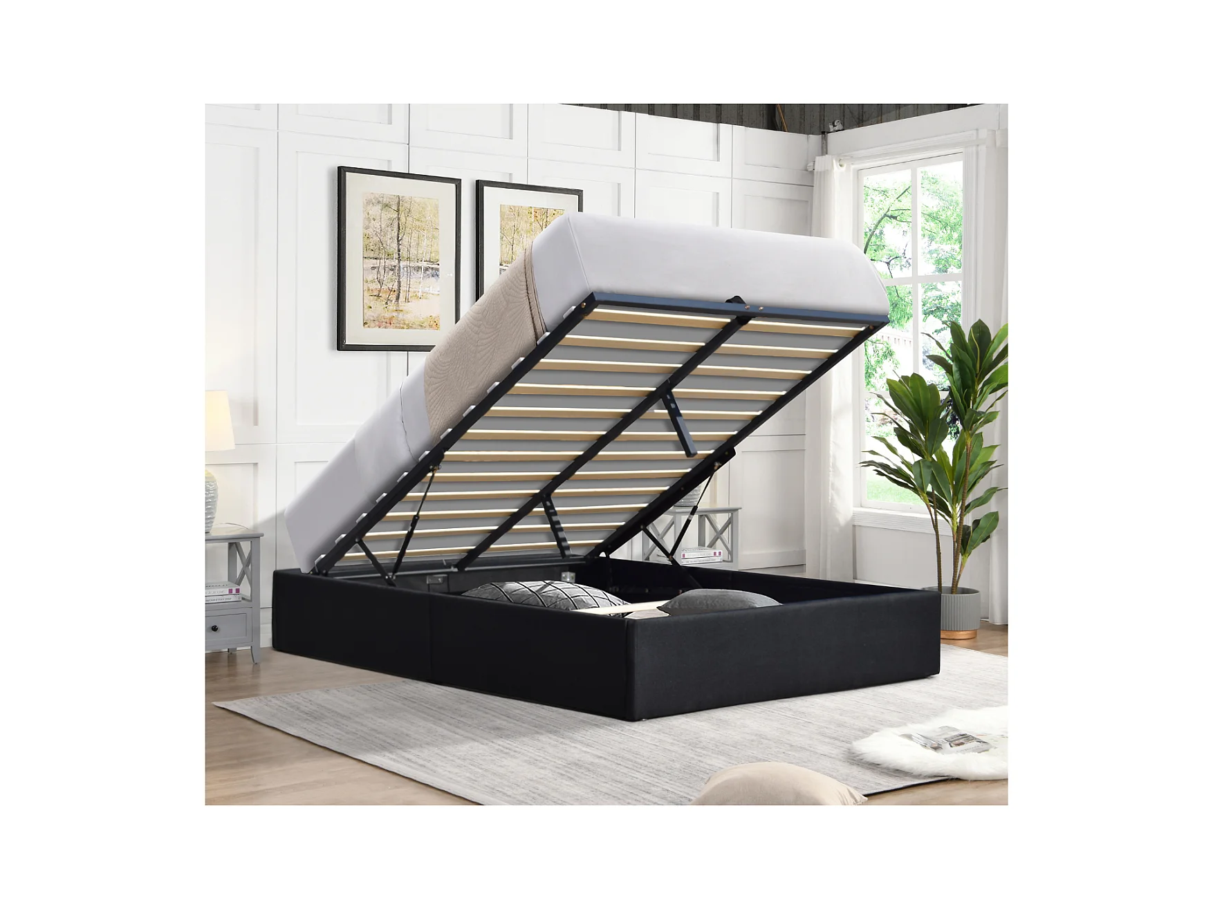 Nuits D'or Solide Lit Coffre Noir pour Matelas 120x190 cm - 12 Lattes - Manon + Pieds - Montage Rapide et Facile - revet