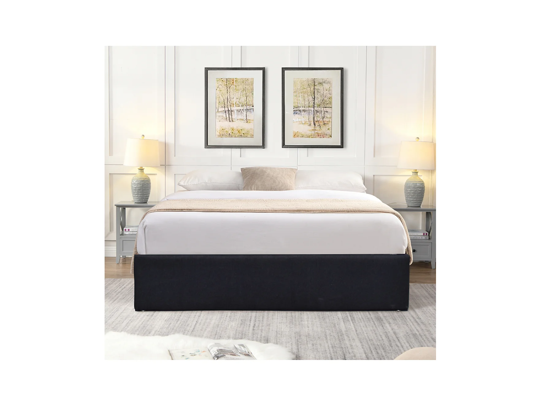 Solide Lit Coffre Noir pour Matelas 140x190 cm - 12 Lattes - Manon + Pieds - Montage Rapide et Facile - revetement PVC S