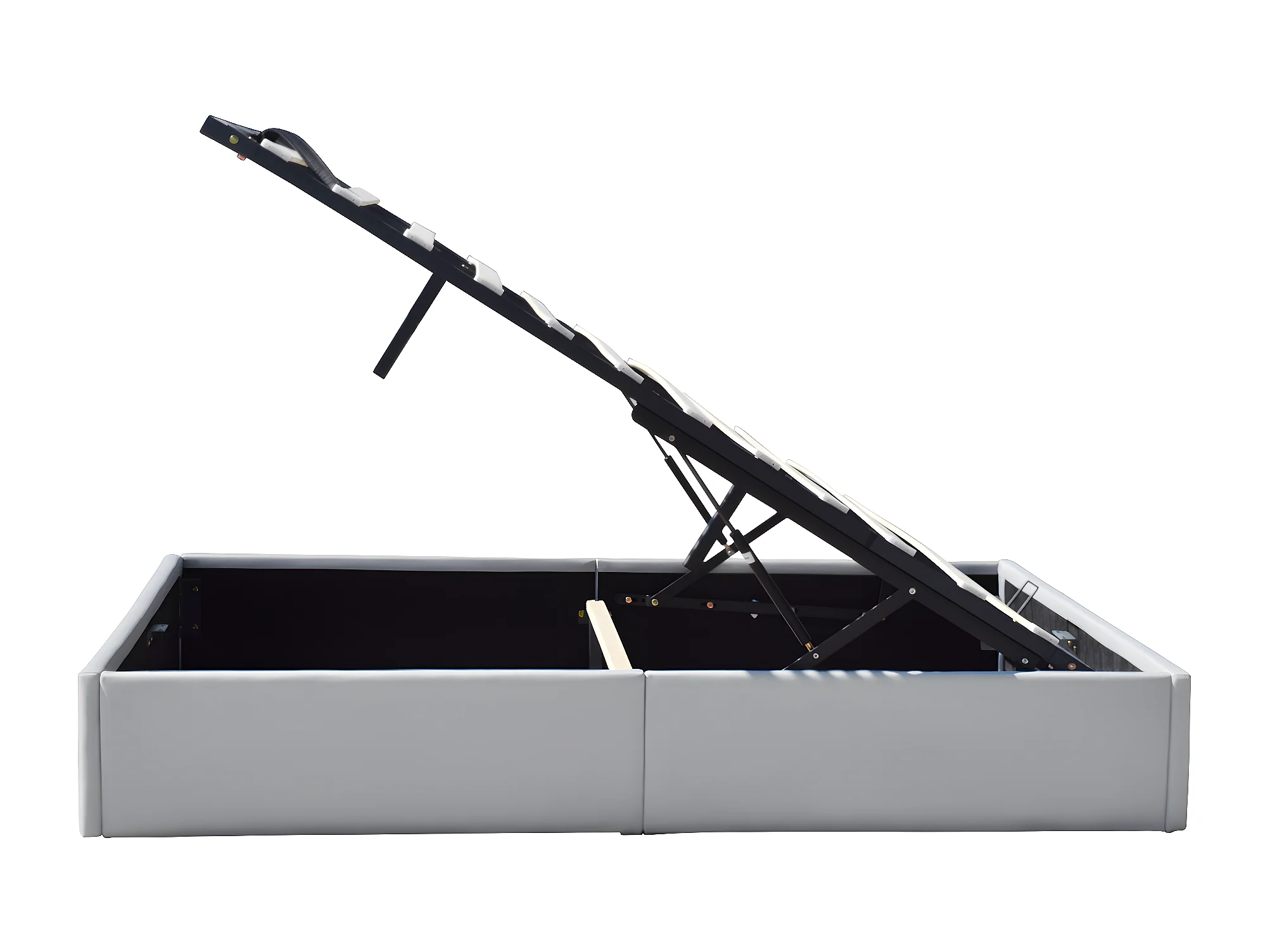 Solide Lit Coffrer Gris pour Matelas 140x200 cm - 14 Lattes - Manon + Pieds - Montage Rapide et Facile - revetement PVC