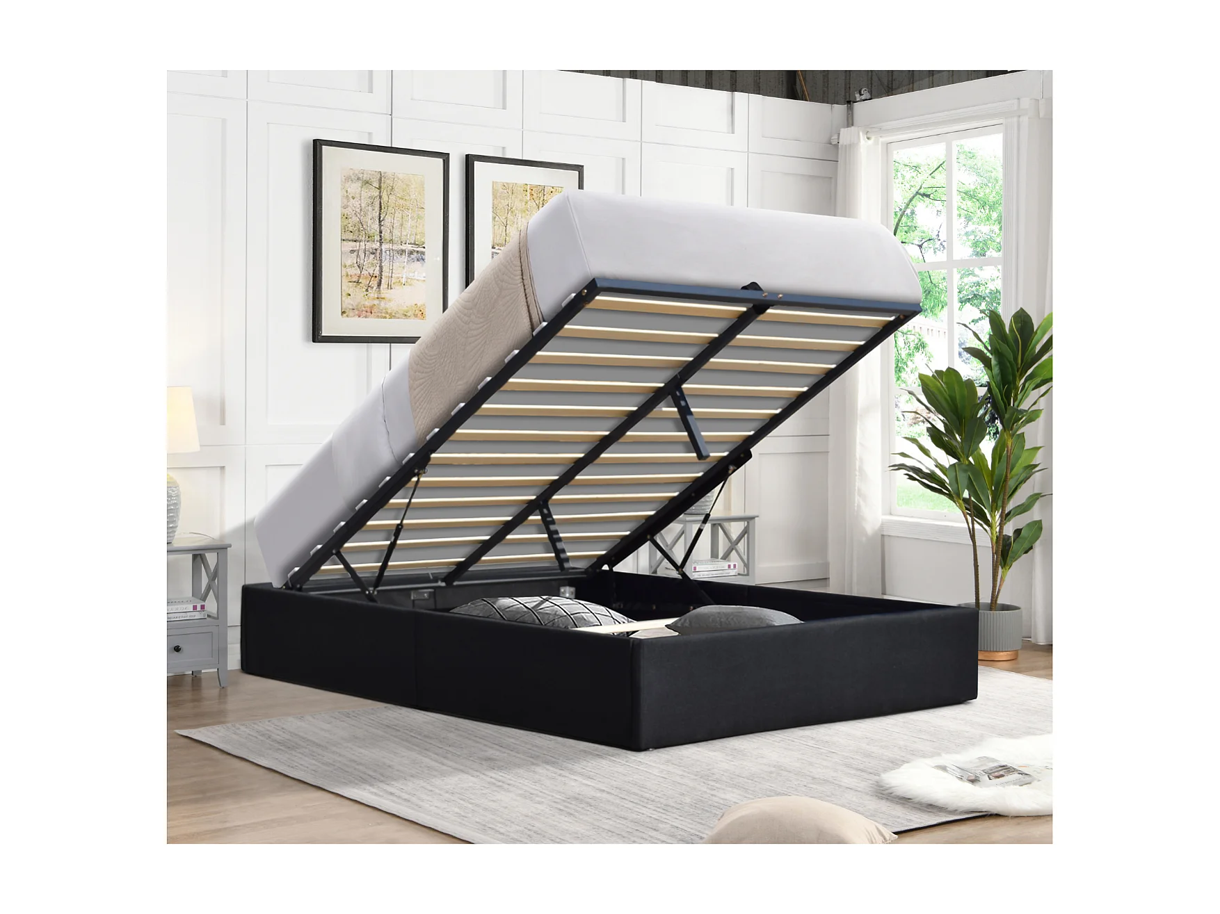 Solide Lit Coffrer Noir pour Matelas 140x200 cm - 14 Lattes - Manon + Pieds - Montage Rapide et Facile - revetement PVC