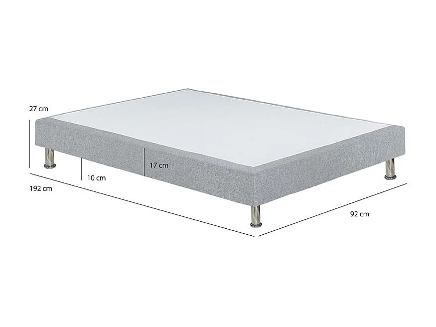 Sommier tapissier 90x190 cm en tissu gris et pieds métal - REMIMOS