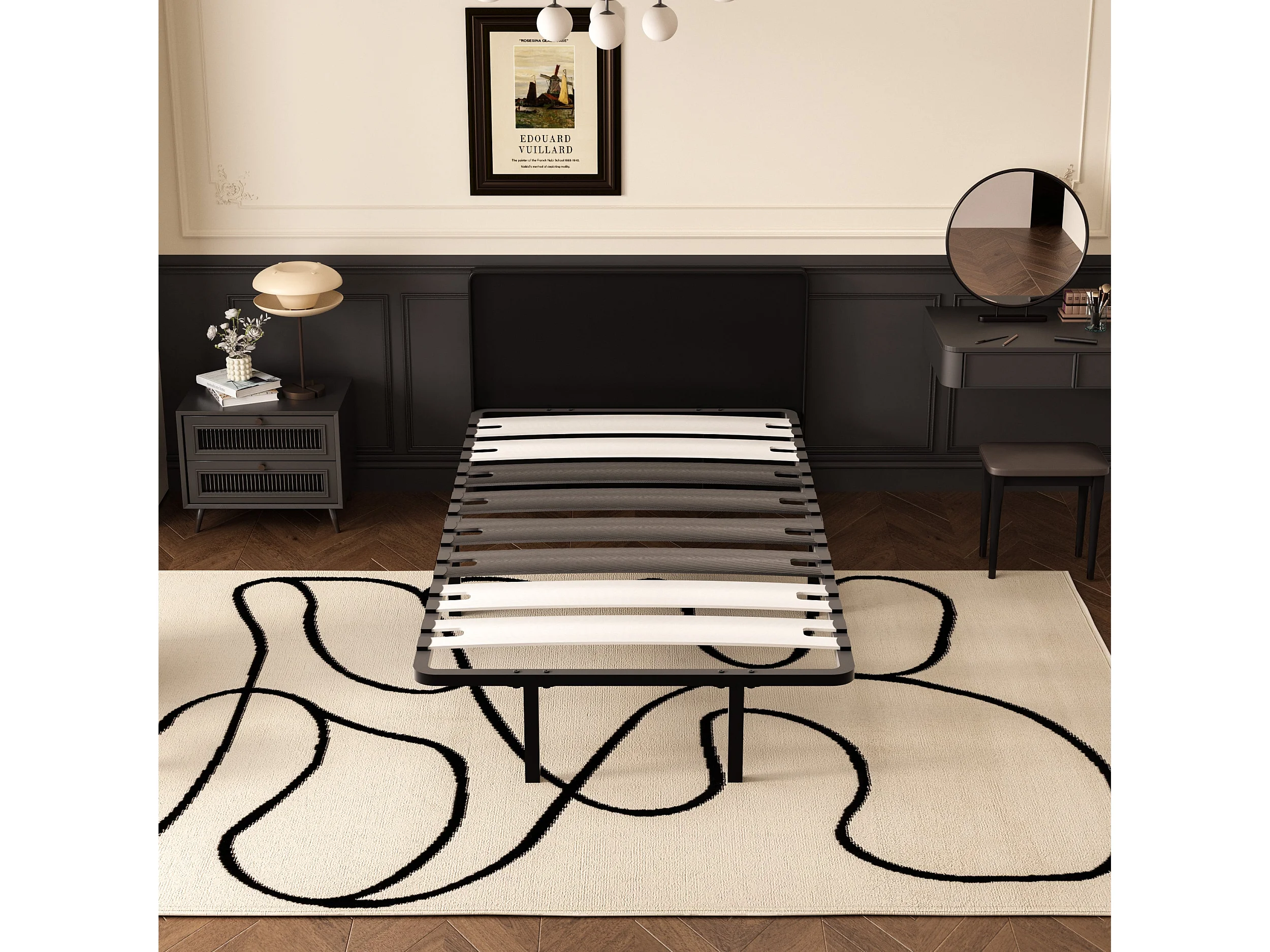 Cadre à lattes 90 x 190 cm - comprend 6 pieds