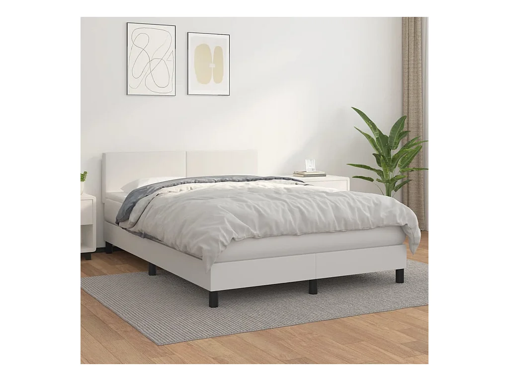 Sommier à lattes de lit avec matelas Blanc 140x190 Similicuir