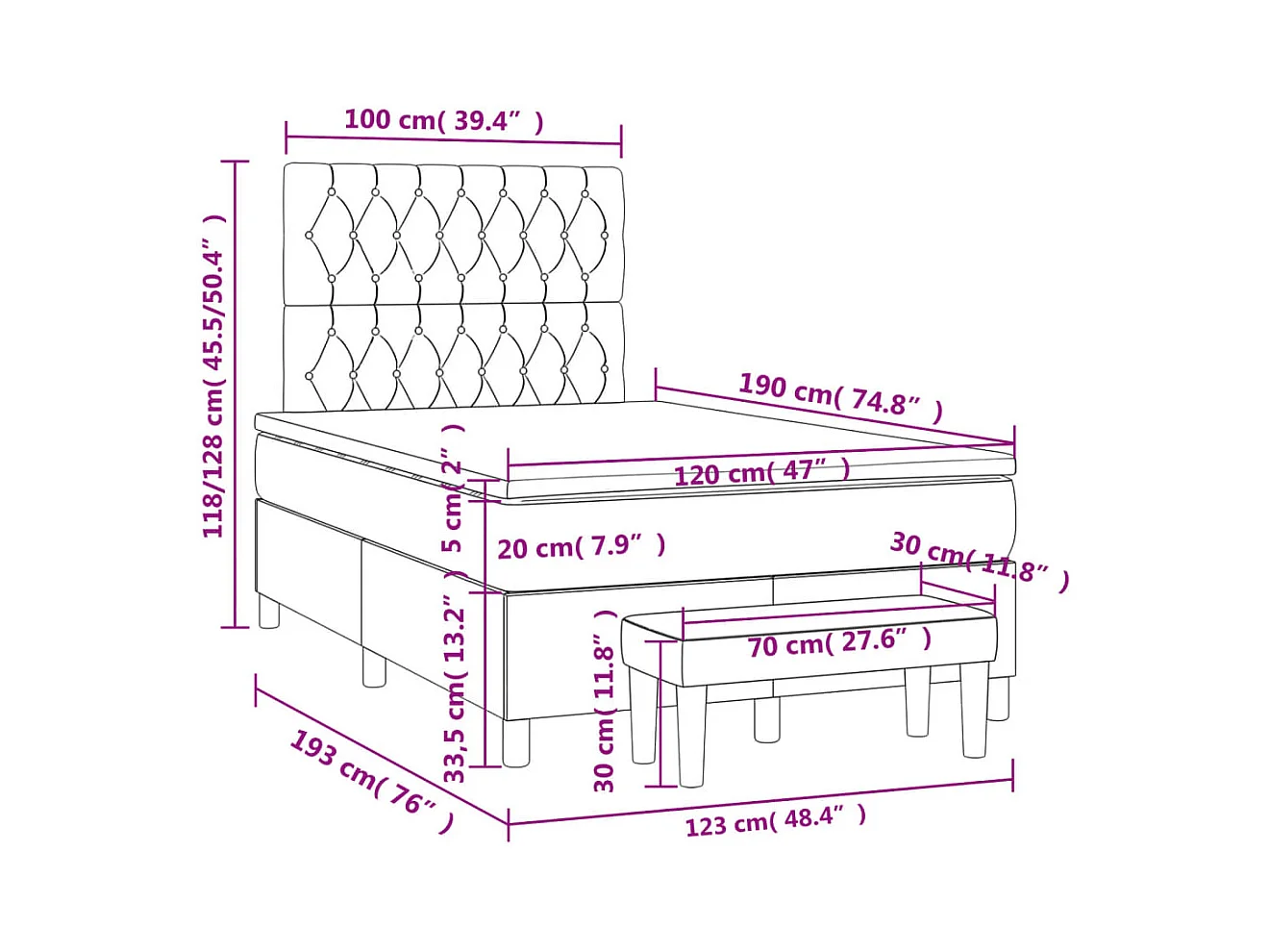 Sommier à lattes de lit avec matelas bleu 120x190 cm tissu