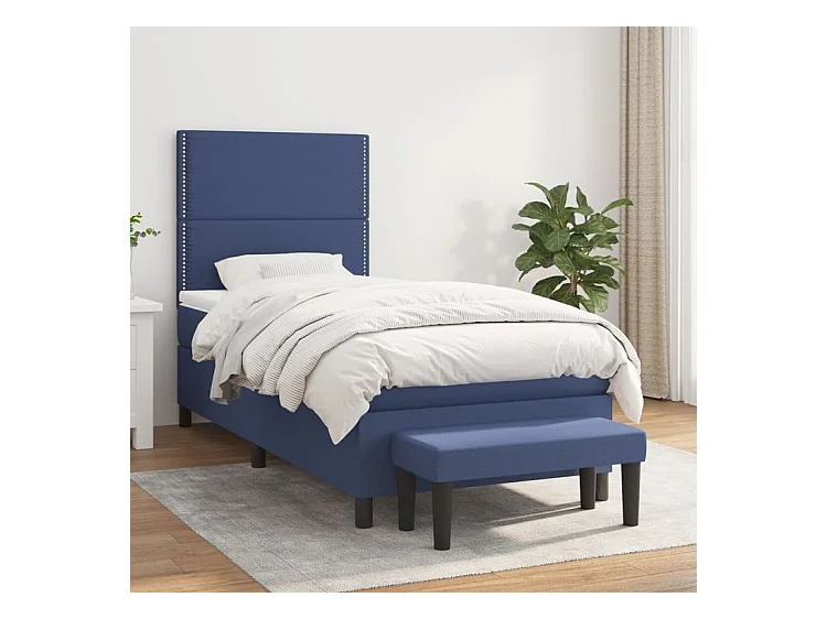 Sommier à lattes de lit avec matelas Bleu 90x190 Tissu
