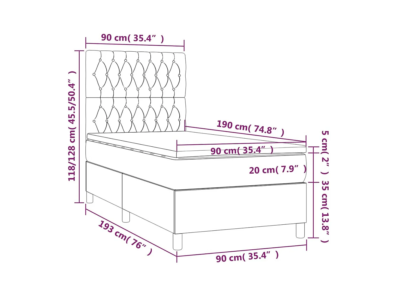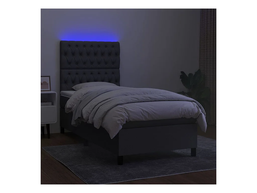Sommier à lattes de lit avec matelas et LED Gris foncé 90x190