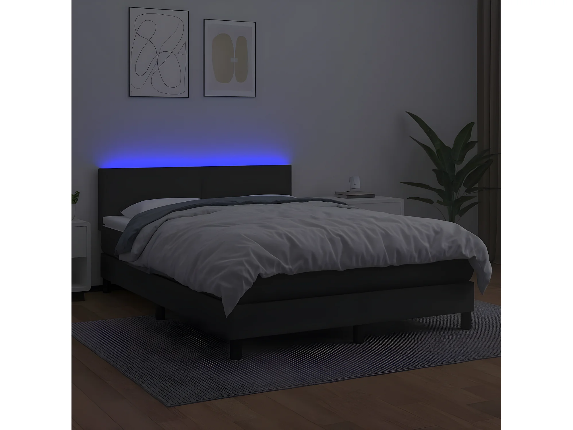 Sommier à lattes de lit avec matelas et LED Noir 140x190