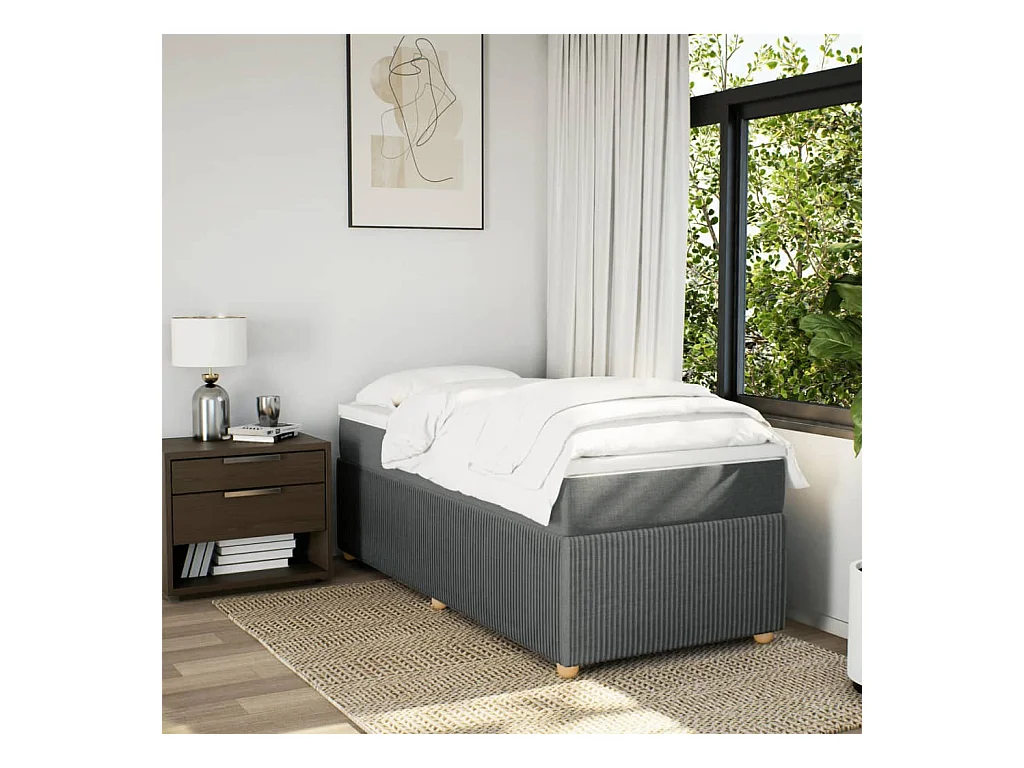 Sommier à lattes de lit avec matelas Gris foncé 90x200 cm Tissu