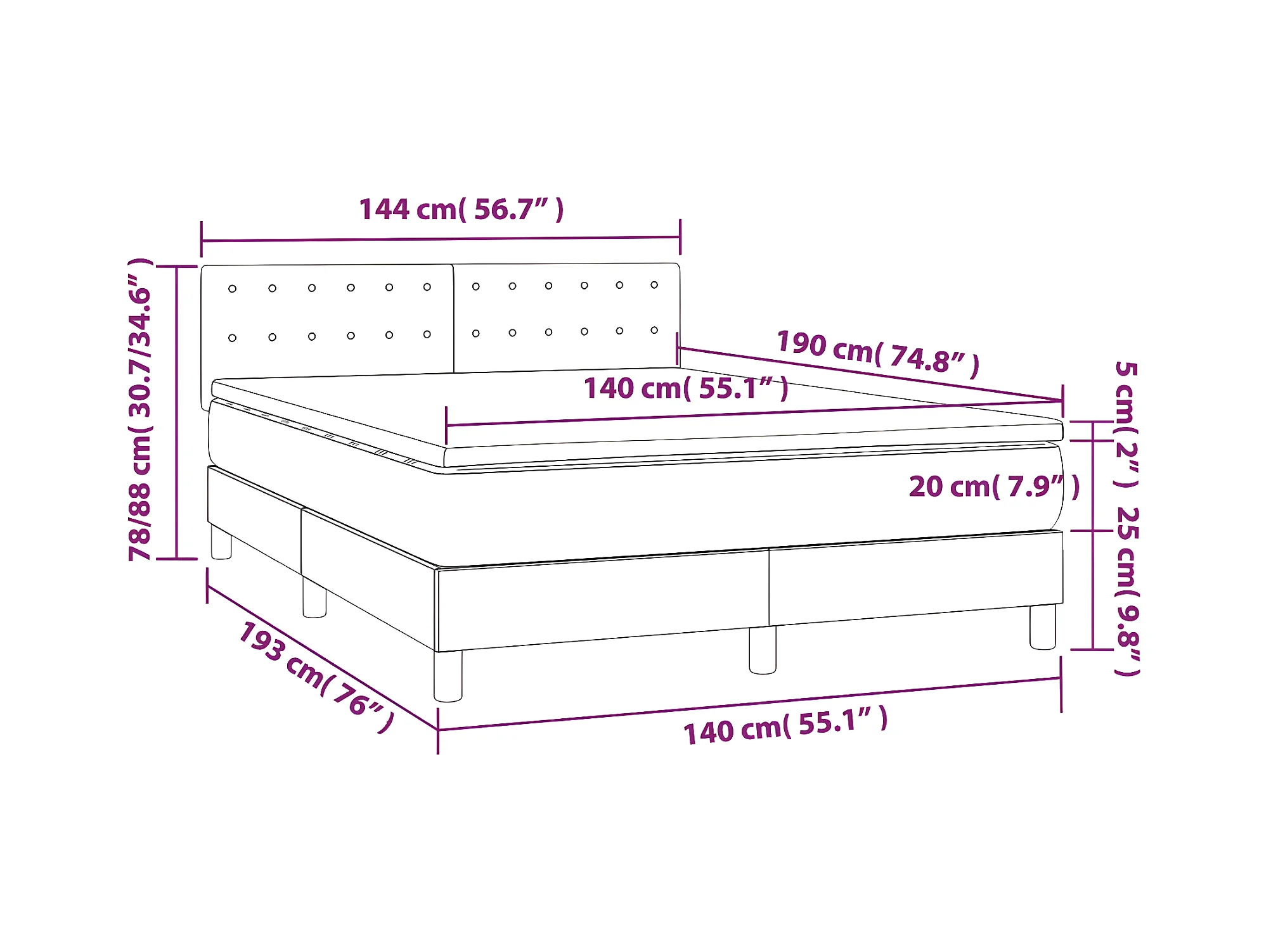 Sommier à lattes de lit avec matelas LED Cappuccino 140x190