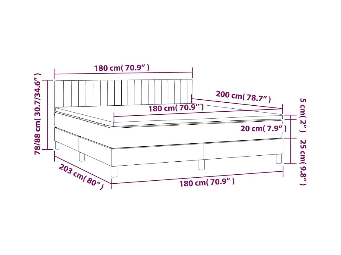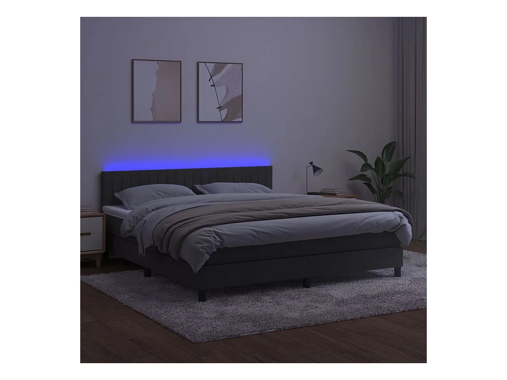 Sommier à lattes de lit avec matelas LED Gris foncé 180x200