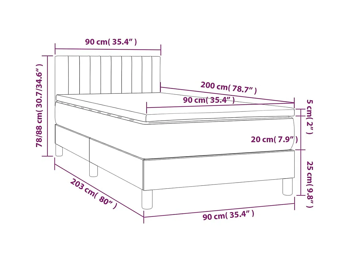 Sommier à lattes de lit avec matelas LED Taupe 90x200 Tissu