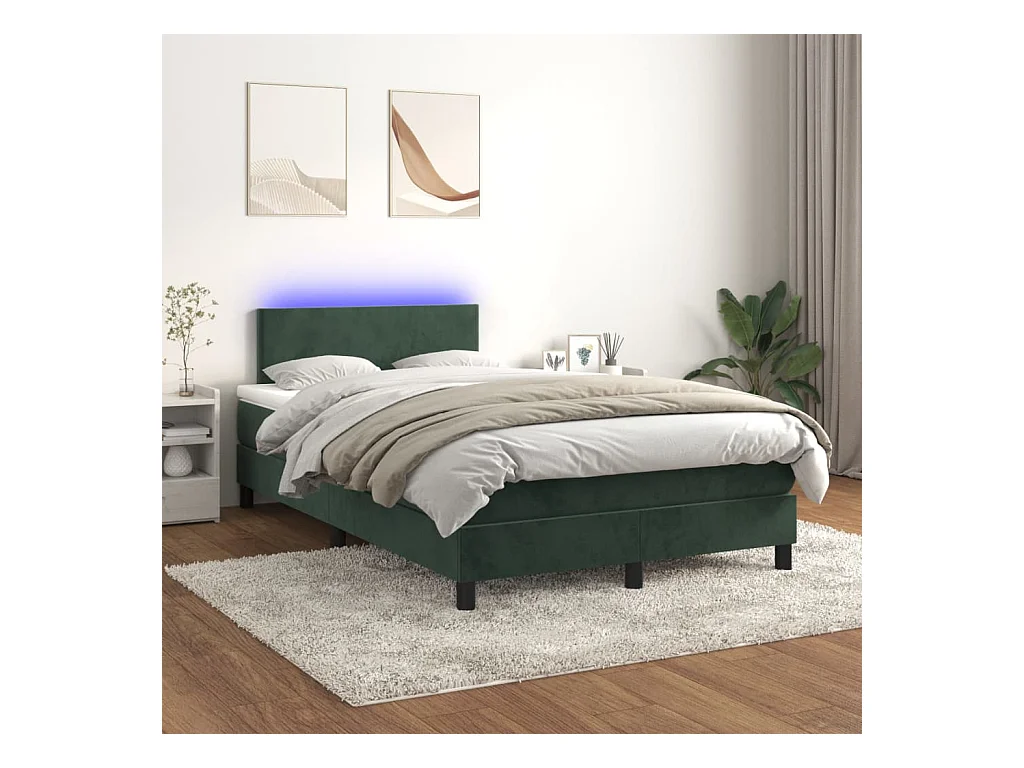 Sommier à lattes de lit avec matelas LED vert foncé 120x190 cm
